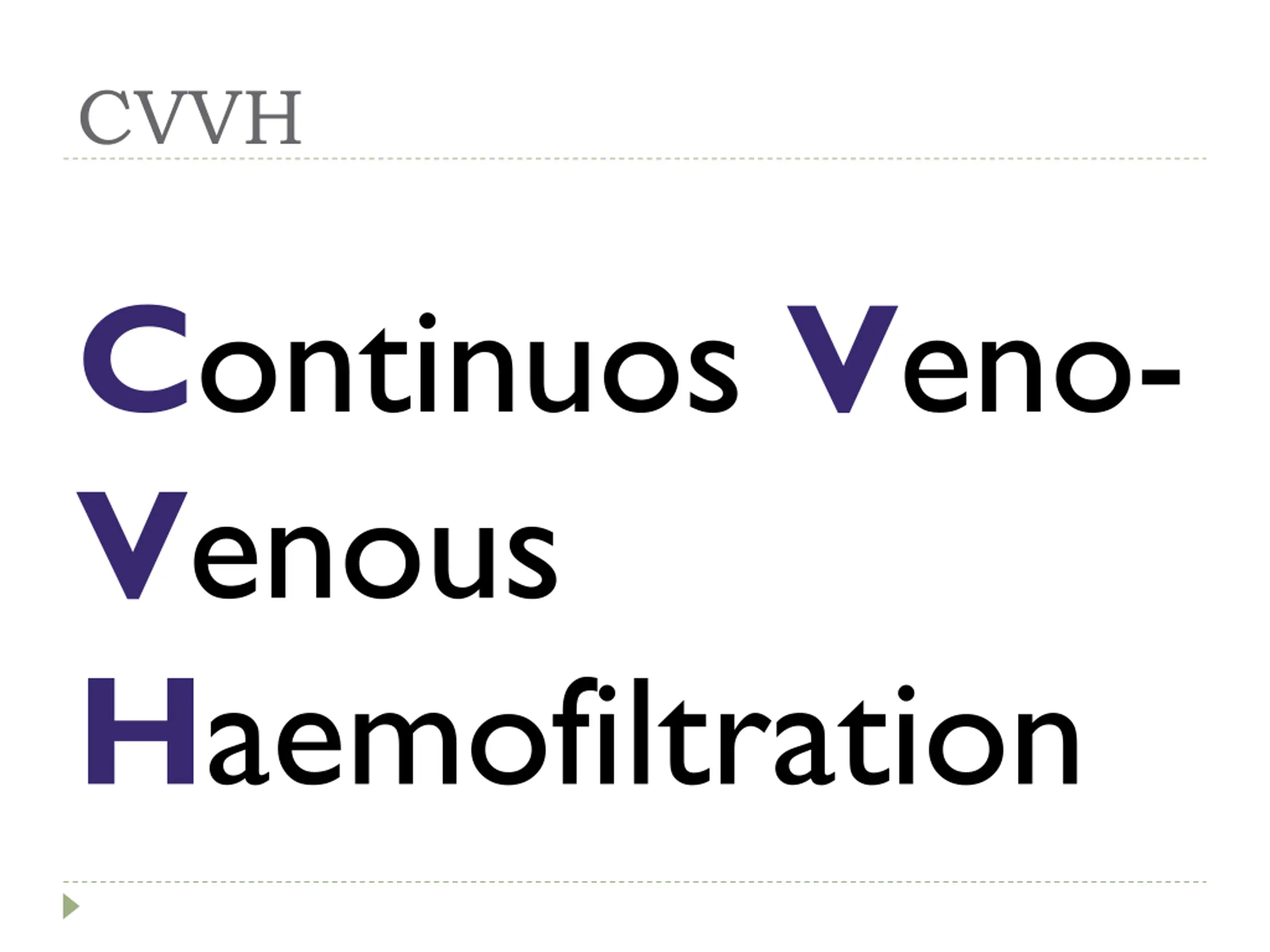 CVVH Continuos Veno- Venous Haemofiltration
