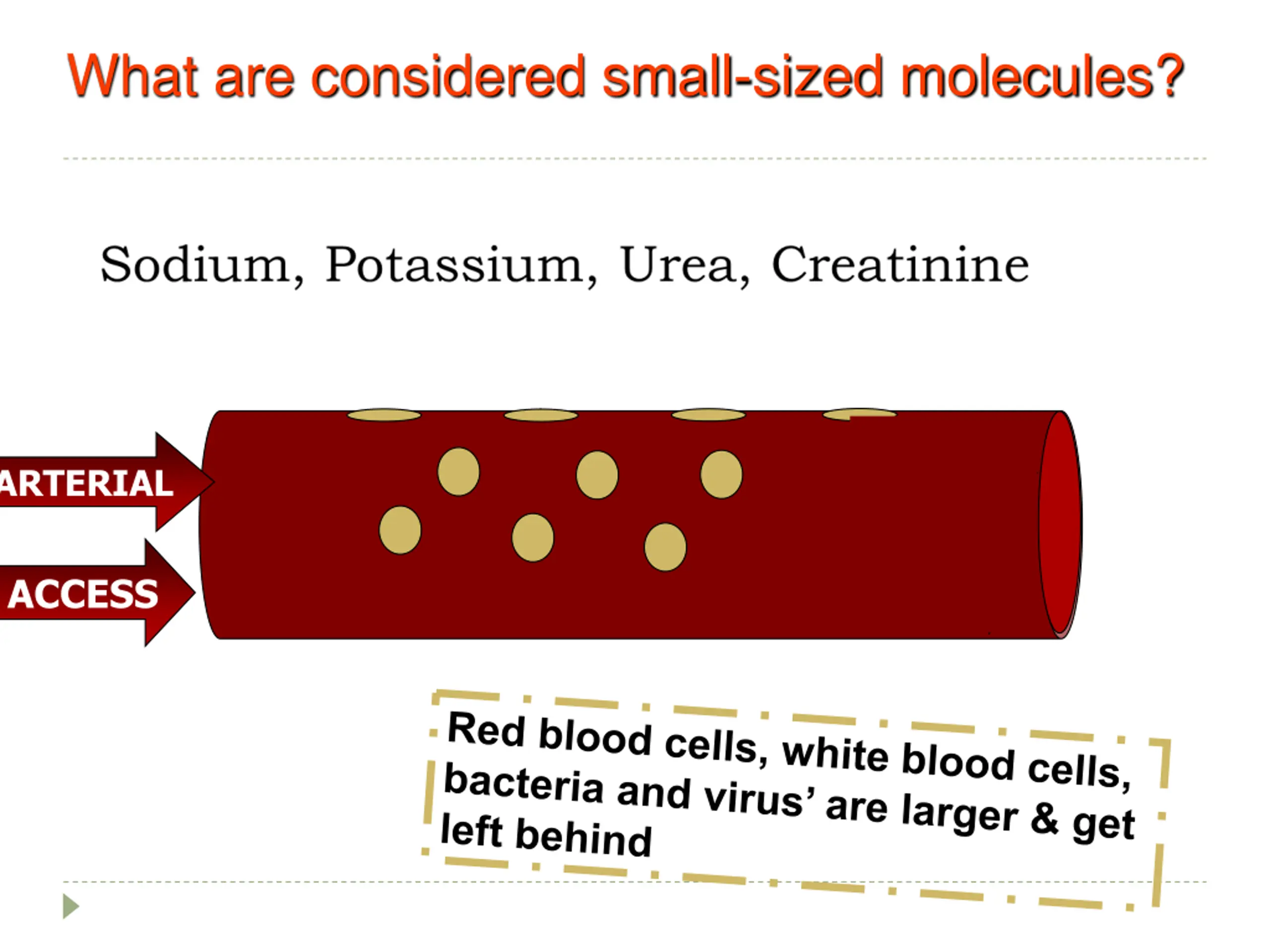 What are considered small-sized molecules? FILTRATE FILTRATE FILTRATE FILTRATE Venous ARTERIAL Return ACCESS