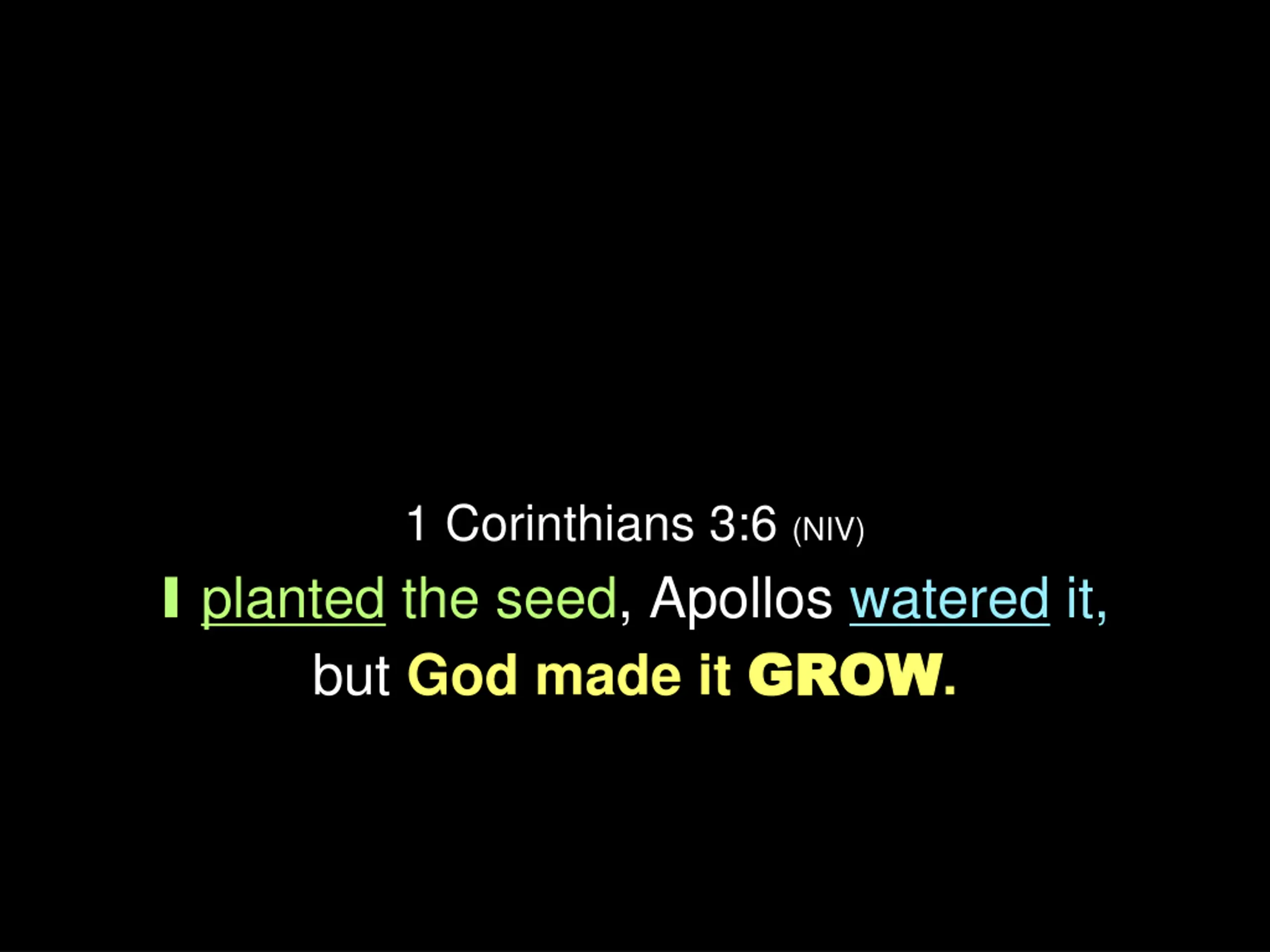 1 Corinthians 3:6 (NIV) I planted the seed, Apollos watered it, but God made it GROW GROW.