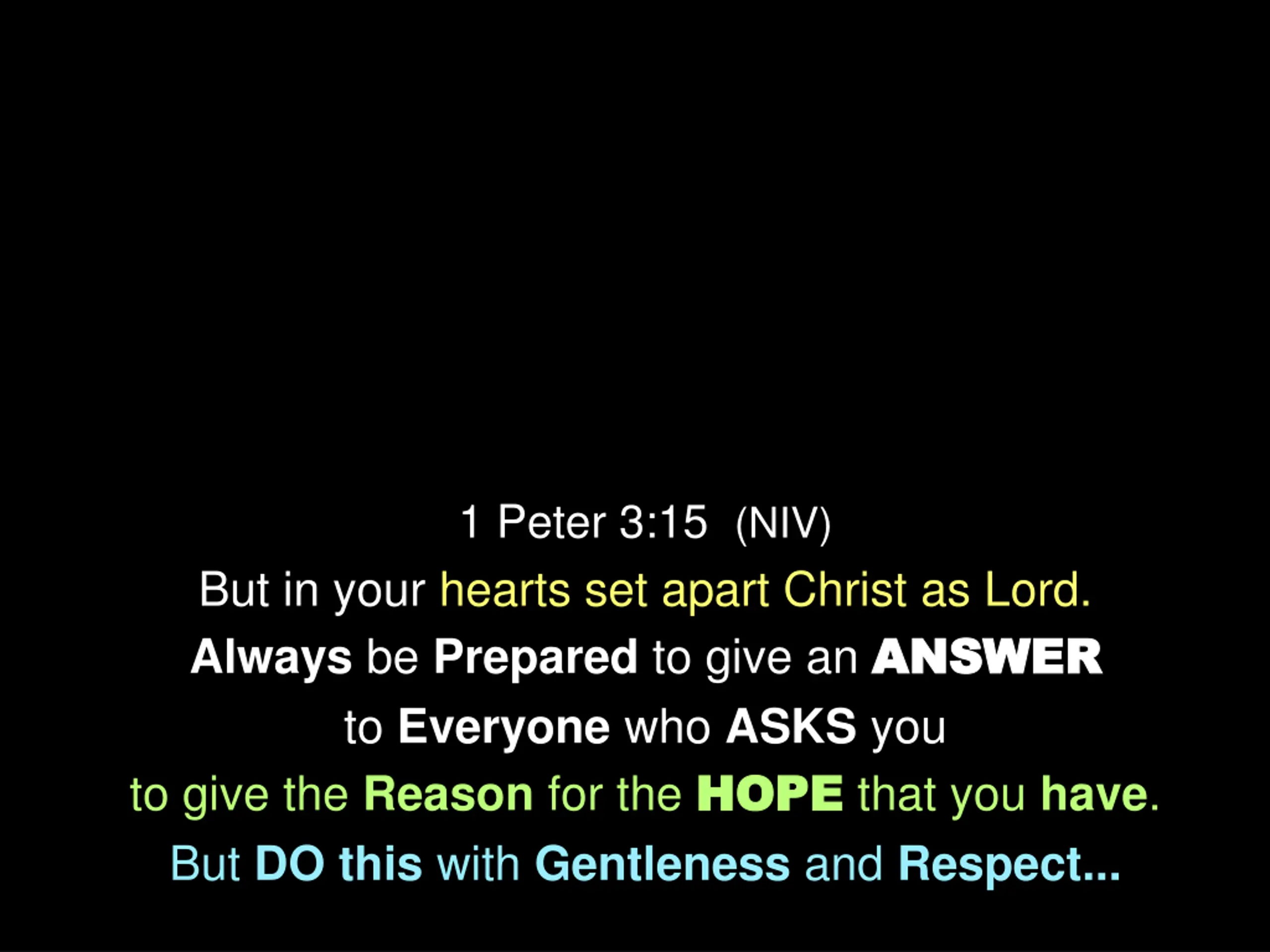 1 Peter 3:15 (NIV) But in your hearts set apart Christ as Lord. Always be Prepared to give an ANSWER to Everyone who ASKS you to give the Reason for the HOPE But DO this with Gentleness and Respect... ANSWER HOPE that you have.