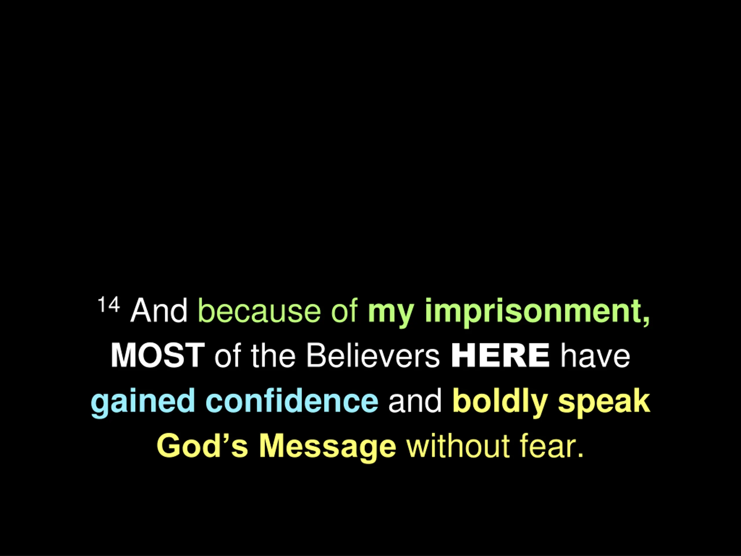 14And because of my imprisonment, MOST of the Believers HERE have gained confidence and boldly speak God s Message without fear.