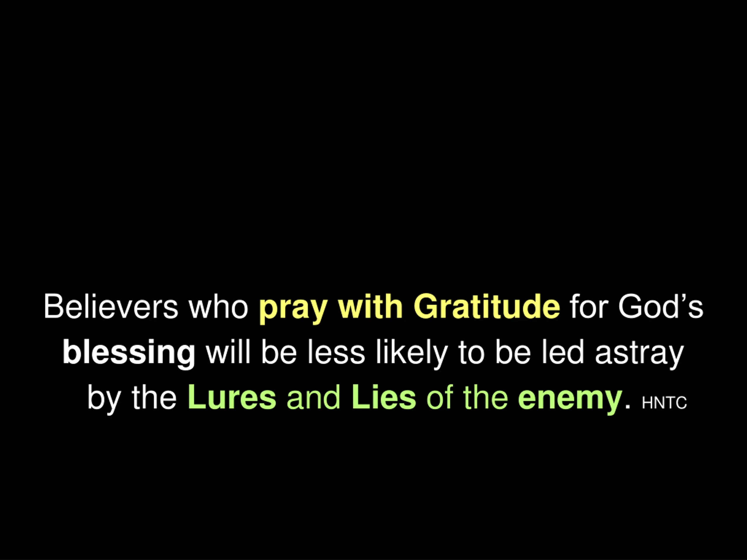 Believers who pray with Gratitude for Gods blessing will be less likely to be led astray by the Lures and Lies of the enemy. HNTC