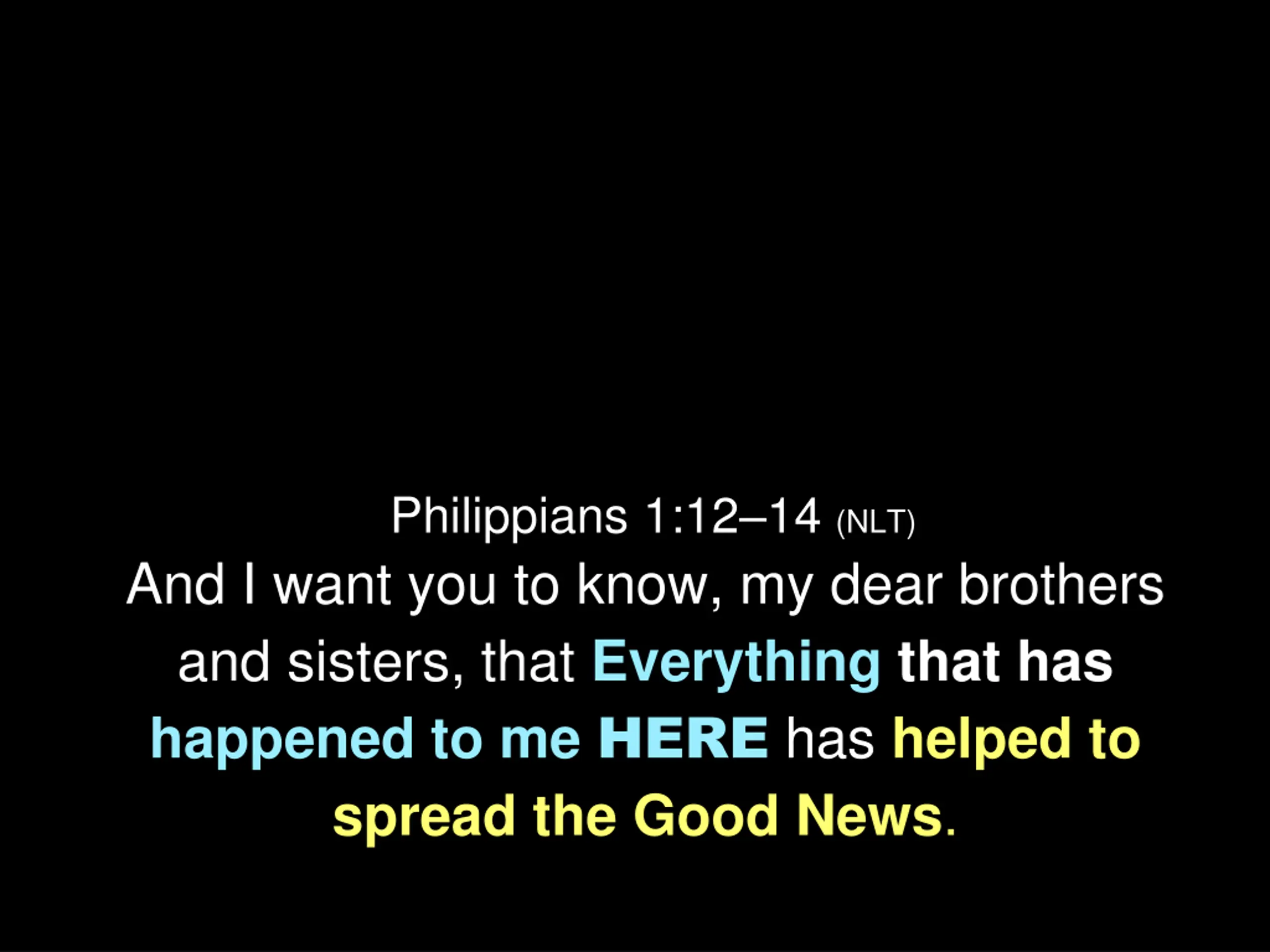 Philippians 1:1214 (NLT) And I want you to know, my dear brothers and sisters, that Everything that has happened to me HERE has helped to spread the Good News.