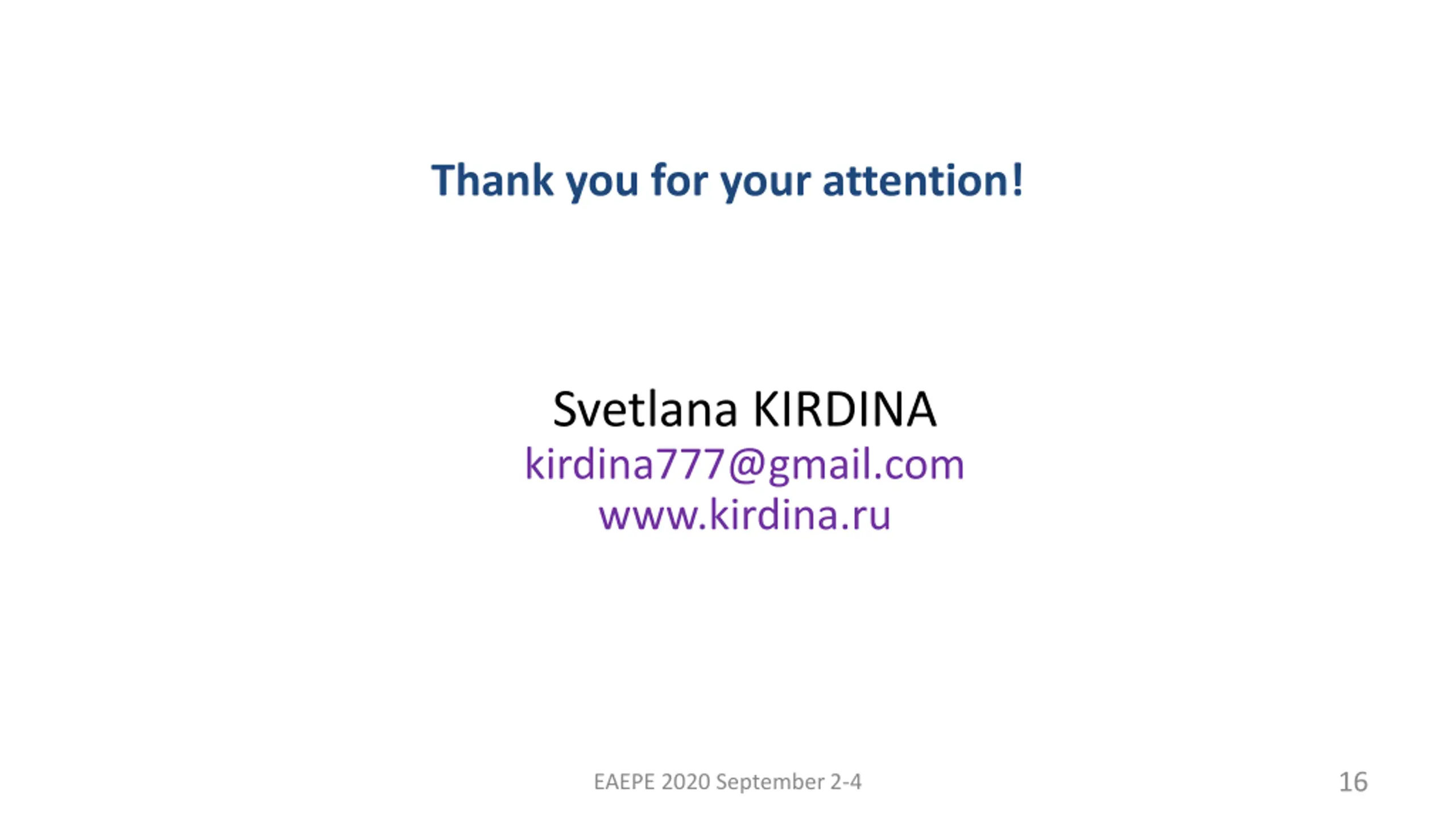Thank you for your attention! Svetlana KIRDINA kirdina777@gmail.com www.kirdina.ru 16 EAEPE 2020 September 2-4