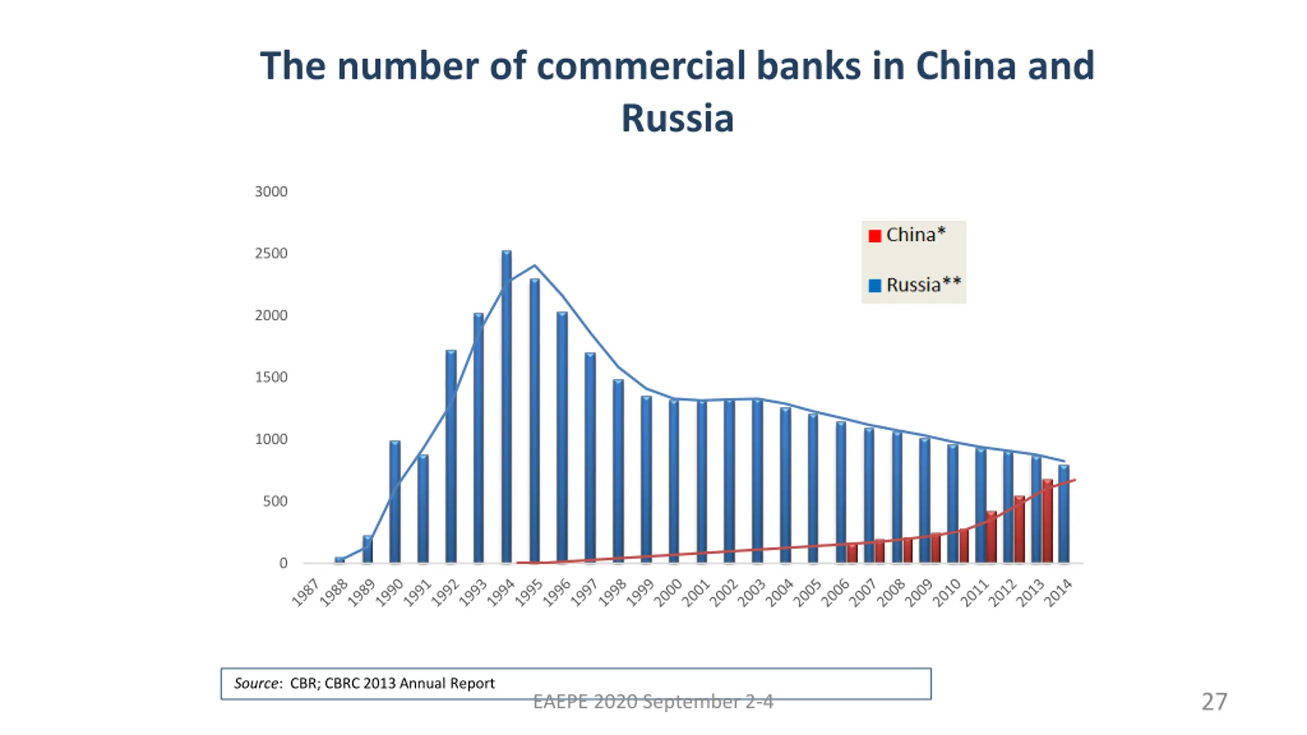 The number of commercial banks in China and Russia 3000 2500 2000 1500 1000 500 0 Source: CBR; CBRC 2013Annual Report 27 EAEPE 2020 September 2-4