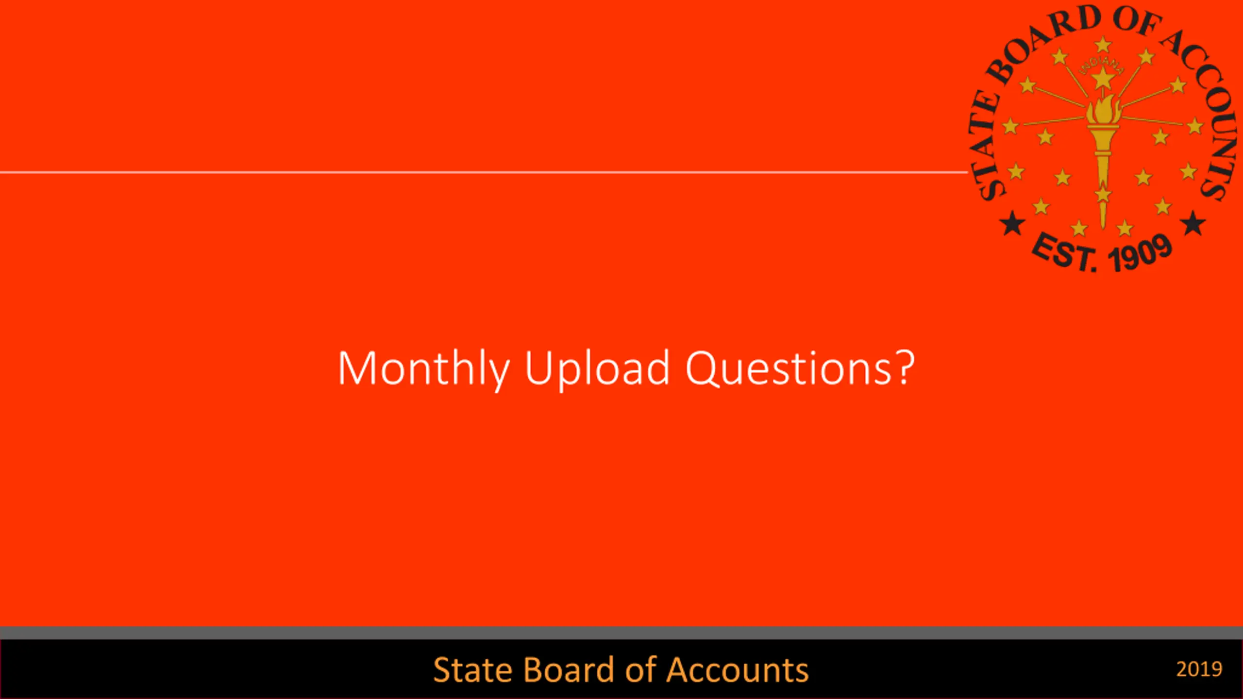Monthly Upload Questions? State Board of Accounts 2019