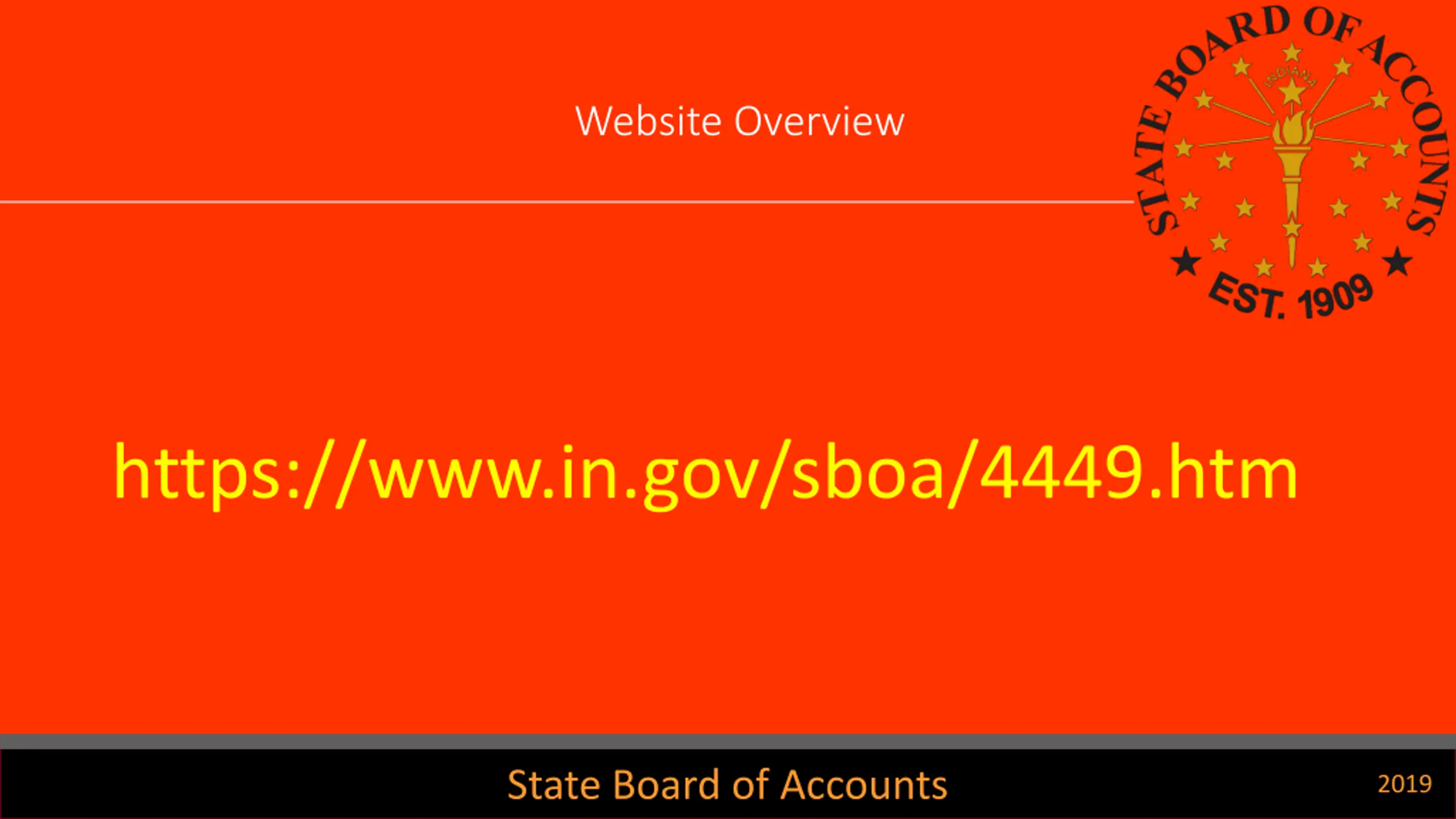 Website Overview https://www.in.gov/sboa/4449.htm State Board of Accounts 2019