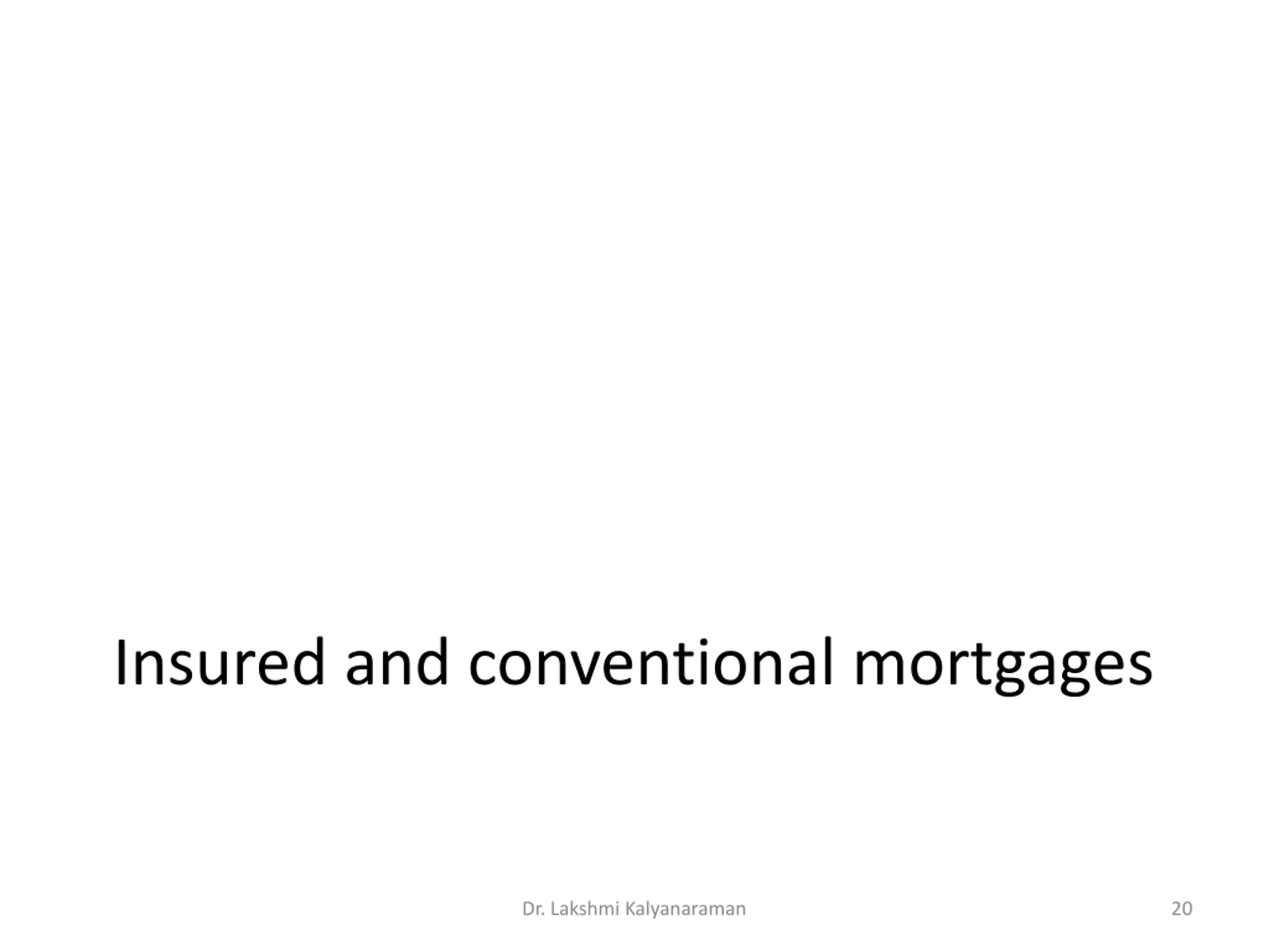 Insured and conventional mortgages Dr. Lakshmi Kalyanaraman 20
