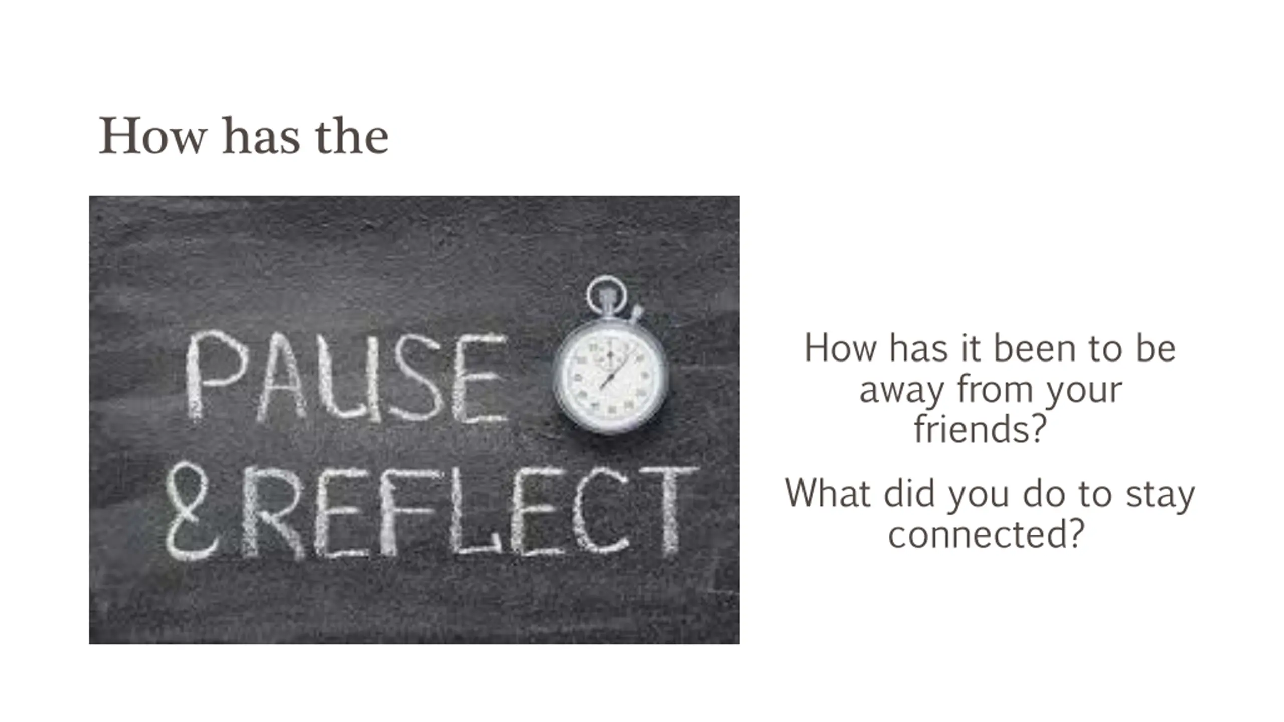 How has the How has it been to be away from your friends? What did you do to stay connected?