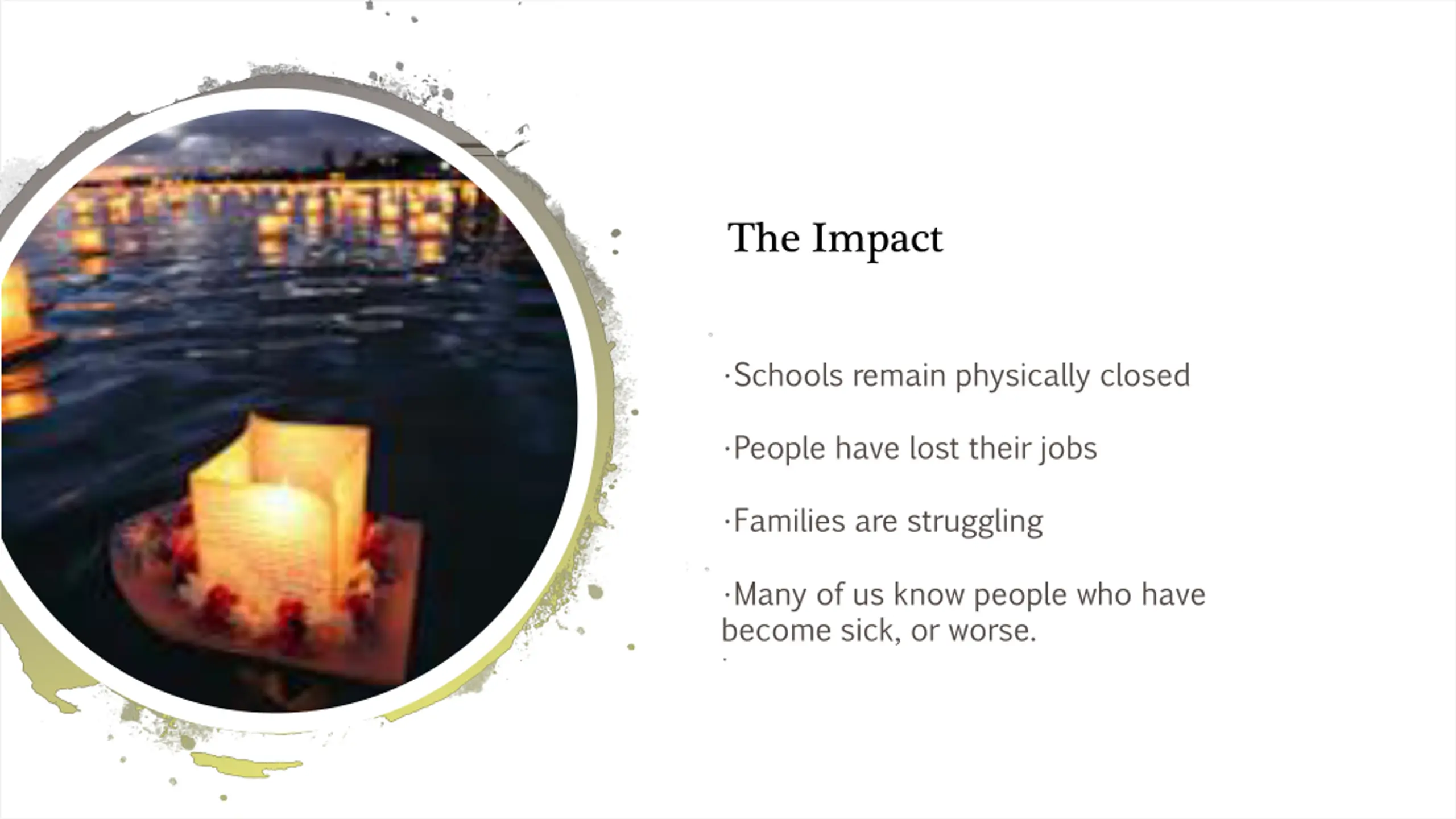 The Impact Schools remain physically closed People have lost their jobs Families are struggling Many of us know people who have become sick, or worse.