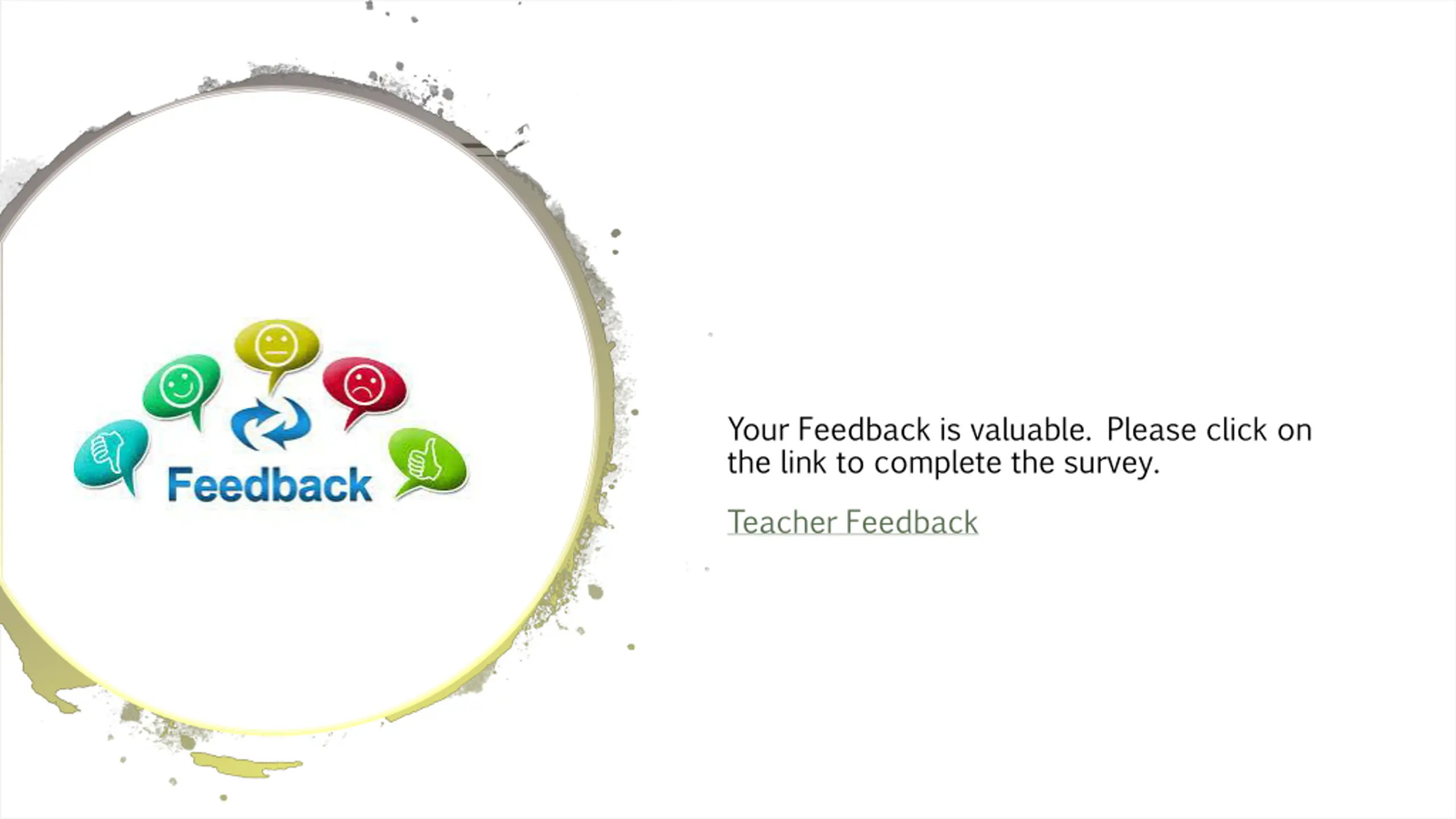 Your Feedback is valuable. Please click on the link to complete the survey. Teacher Feedback