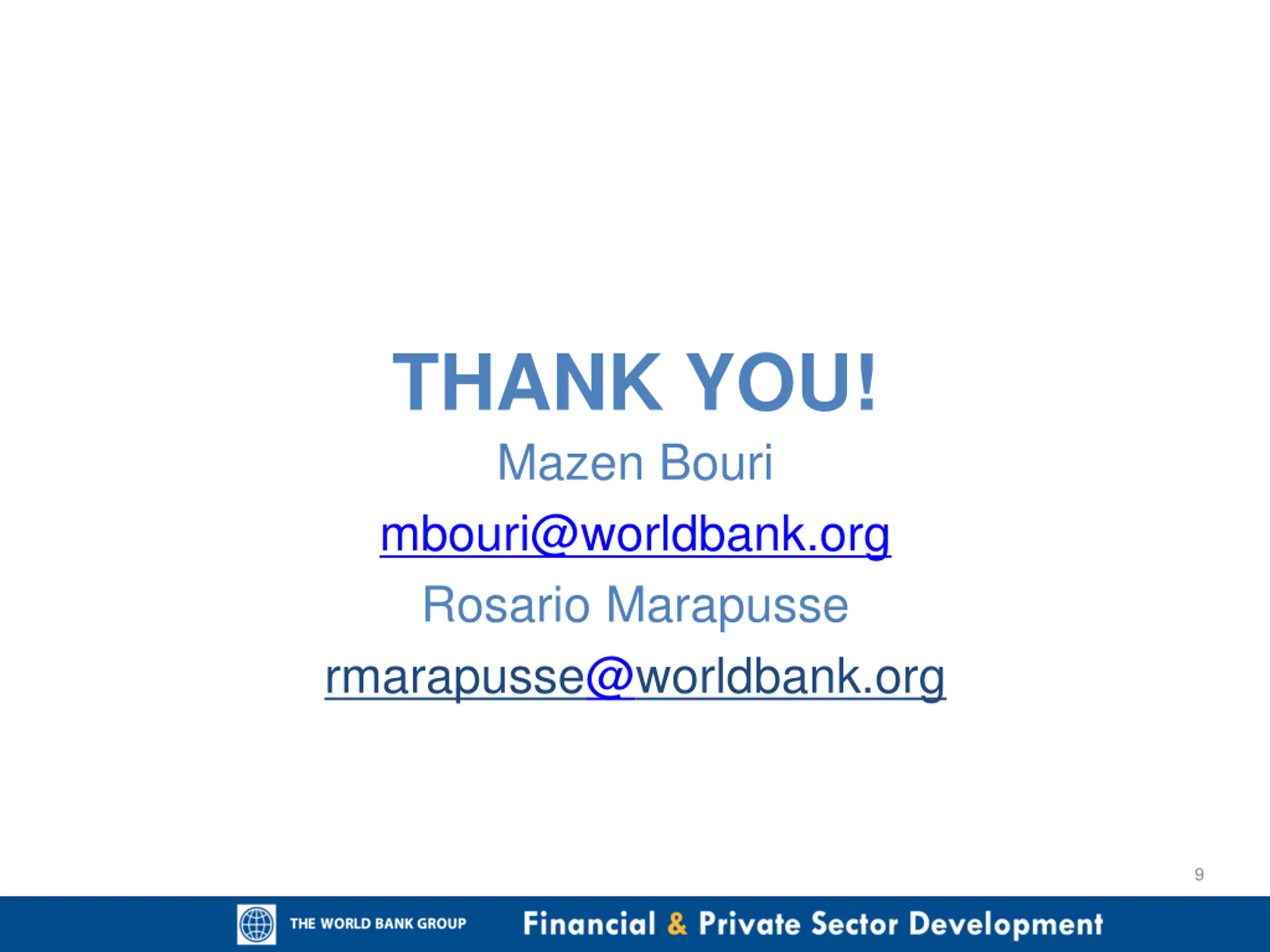 THANK YOU! Mazen Bouri mbouri@worldbank.org Rosario Marapusse rmarapusse@worldbank.org 9