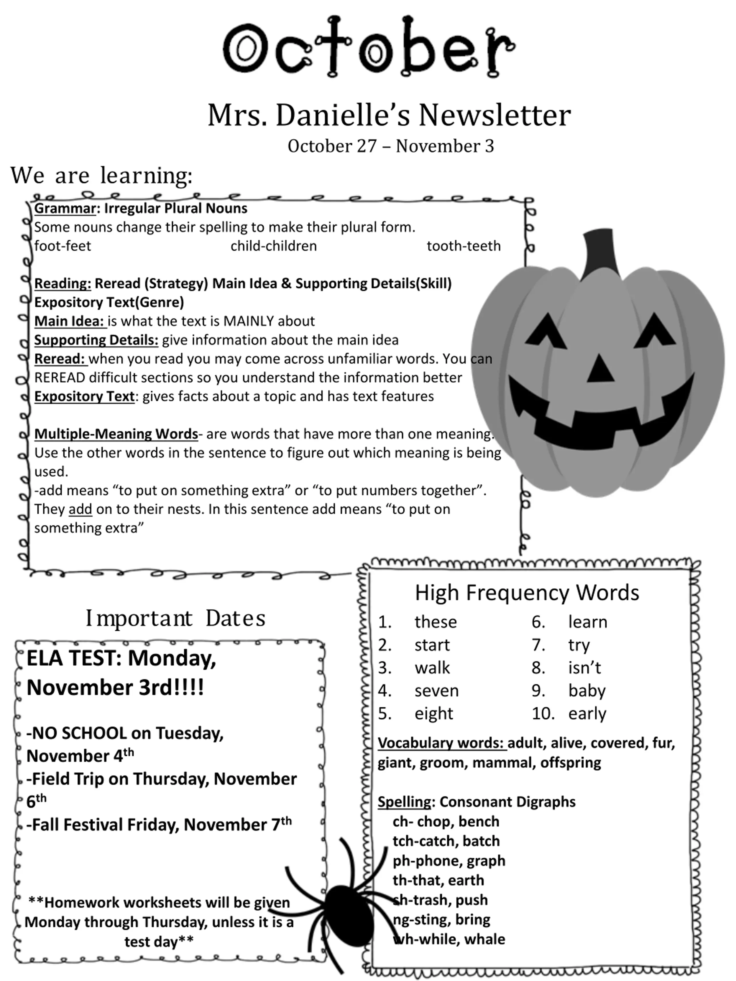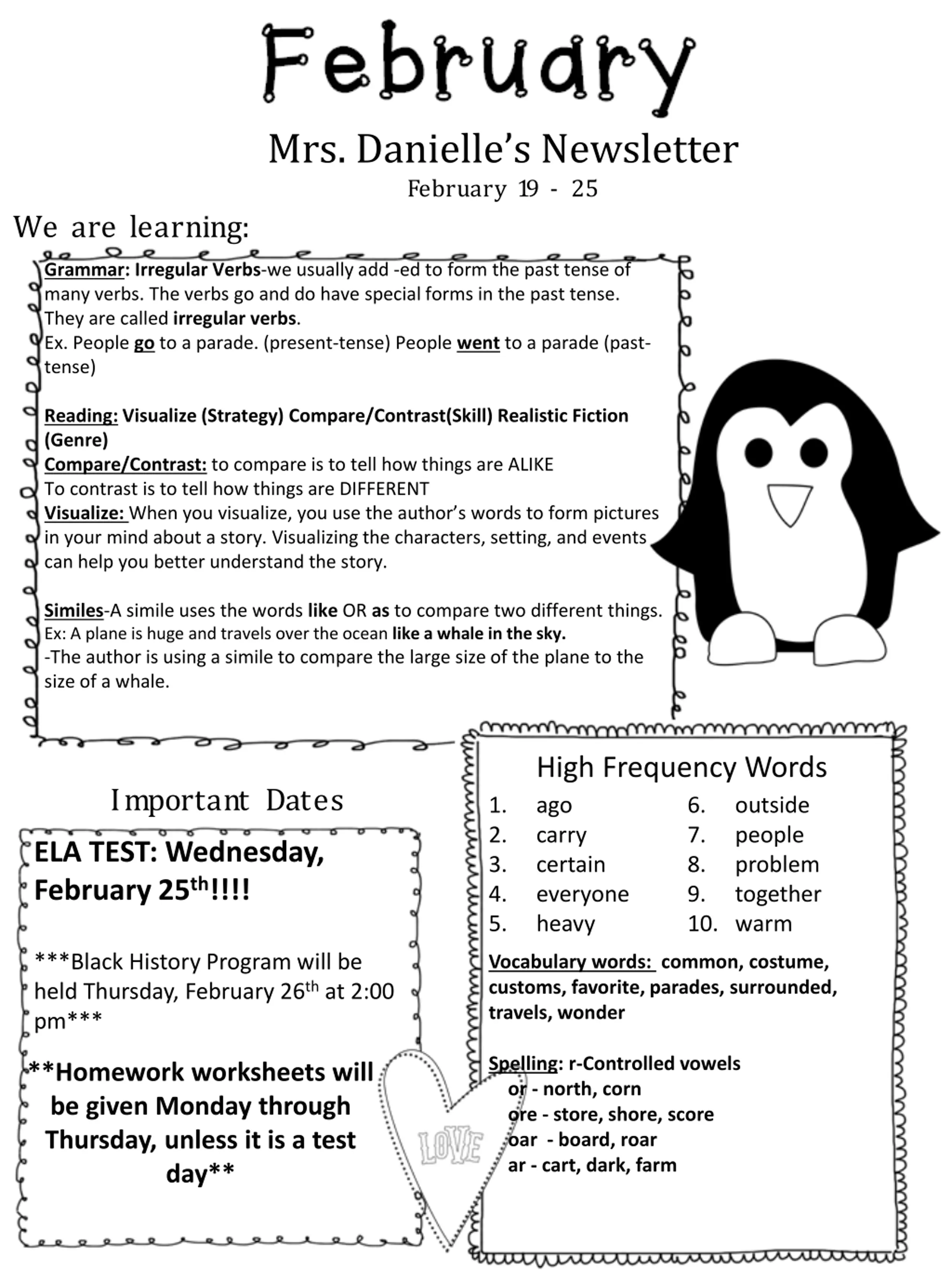 Mrs. Danielles ELA Newsletter - Grammar, Reading, Spelling Highlights