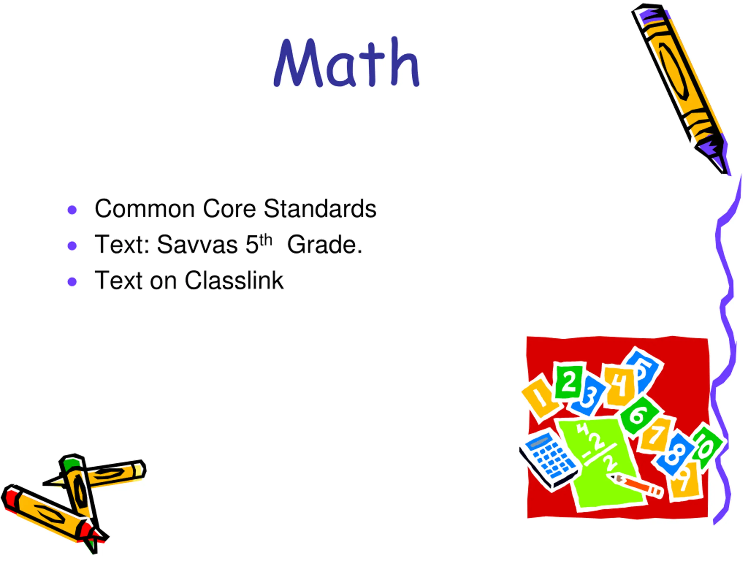 Math Common Core Standards Text: Savvas 5thGrade. Text on Classlink