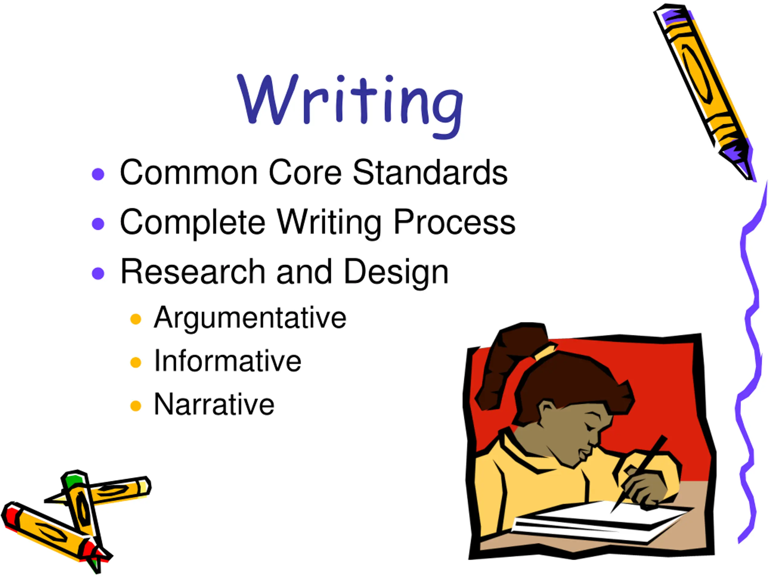 Writing Common Core Standards Complete Writing Process Research and Design Argumentative Informative Narrative