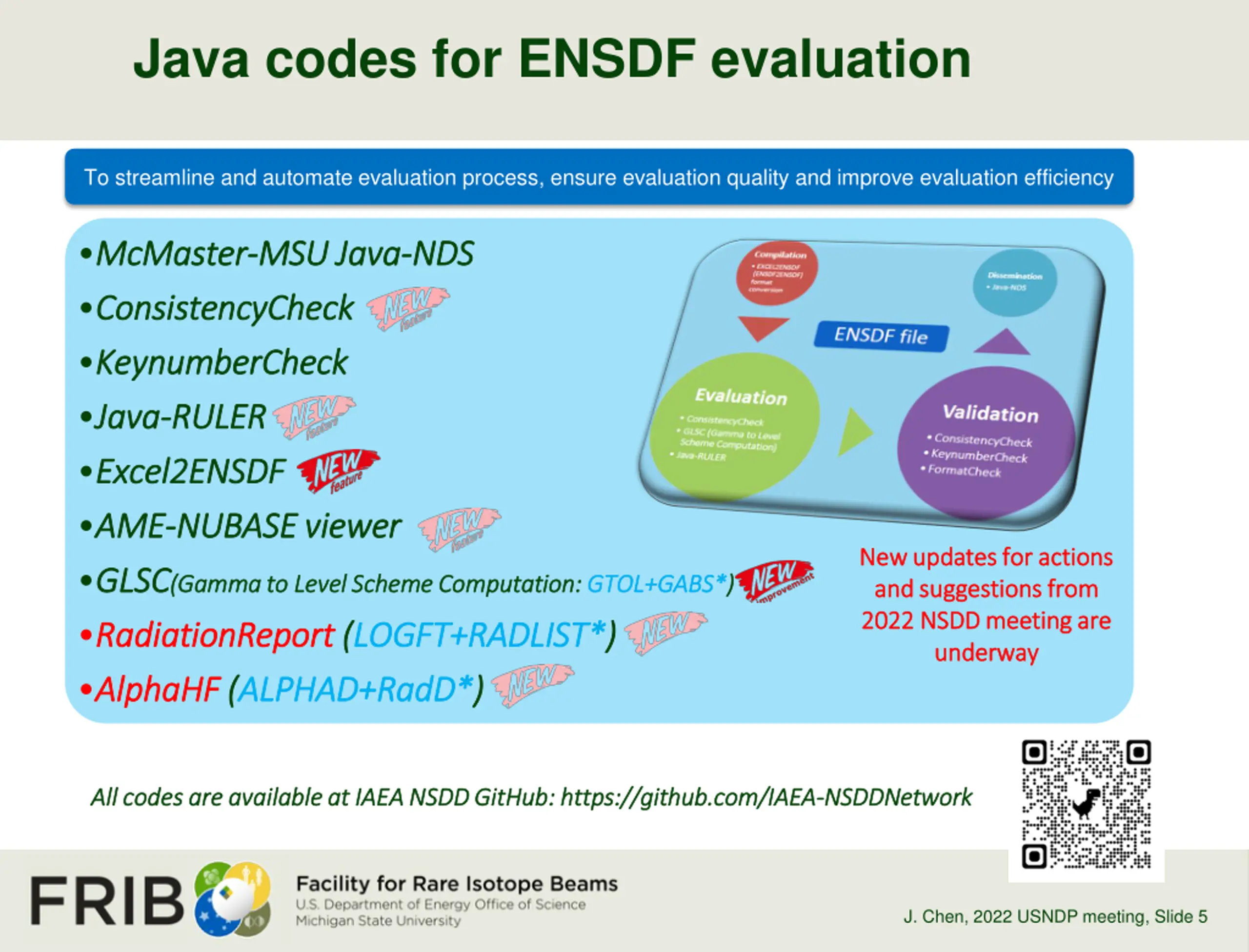 Java codes for ENSDF evaluation To streamline and automate evaluation process, ensure evaluation quality and improve evaluation efficiency McMaster McMaster- -MSU Java ConsistencyCheck ConsistencyCheck KeynumberCheck KeynumberCheck Java Java- -RULER RULER Excel2ENSDF Excel2ENSDF AME AME- -NUBASE NUBASE viewer GLSC GLSC(Gamma to Level Scheme Computation: (Gamma to Level Scheme Computation: GTOL+GABS* RadiationReport RadiationReport ( (LOGFT+RADLIST* LOGFT+RADLIST*) ) AlphaHF AlphaHF ( (ALPHAD+RadD ALPHAD+RadD* *) ) MSU Java- -NDS NDS viewer New updates for actions New updates for actions and suggestions from and suggestions from 2022 NSDD meeting are 2022 NSDD meeting are underway underway GTOL+GABS*) ) All codes are available at IAEA NSDD GitHub All codes are available at IAEA NSDD GitHub: https://github.com/IAEA : https://github.com/IAEA- -NSDDNetwork NSDDNetwork J. Chen, 2022 USNDP meeting, Slide 5