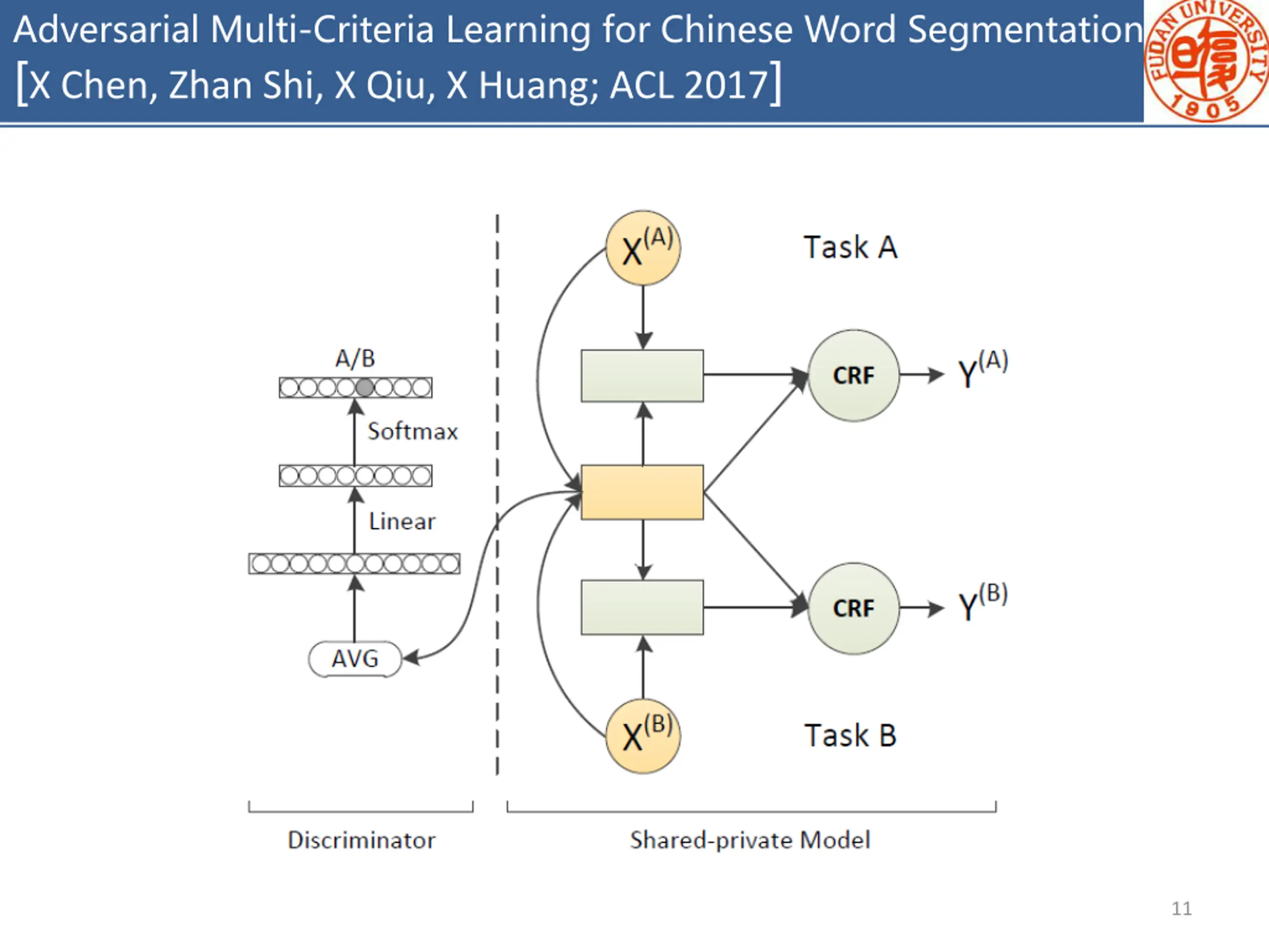 Adversarial Multi-Criteria Learning for Chinese Word Segmentation [X Chen, Zhan Shi, X Qiu, X Huang; ACL 2017] 11