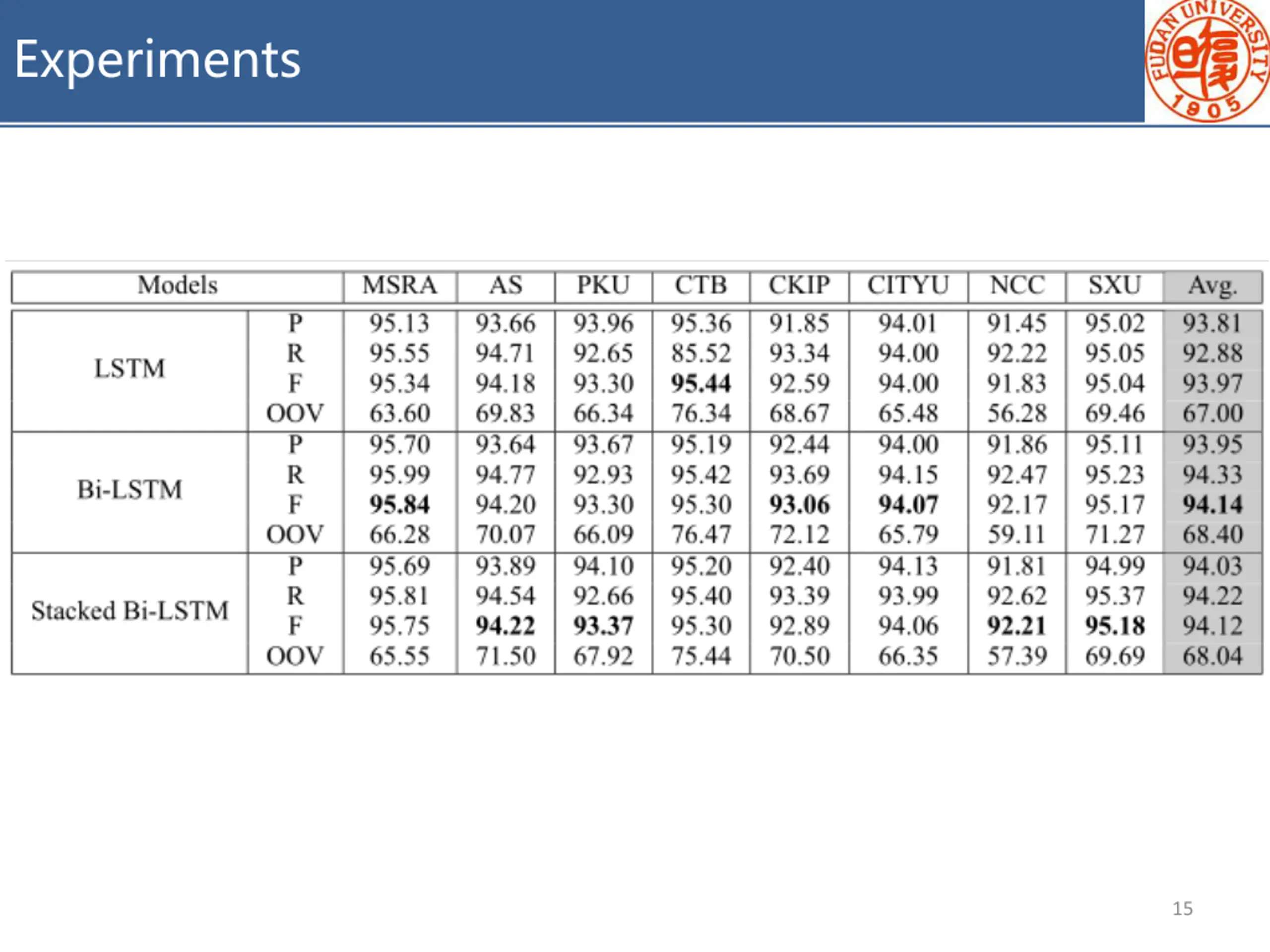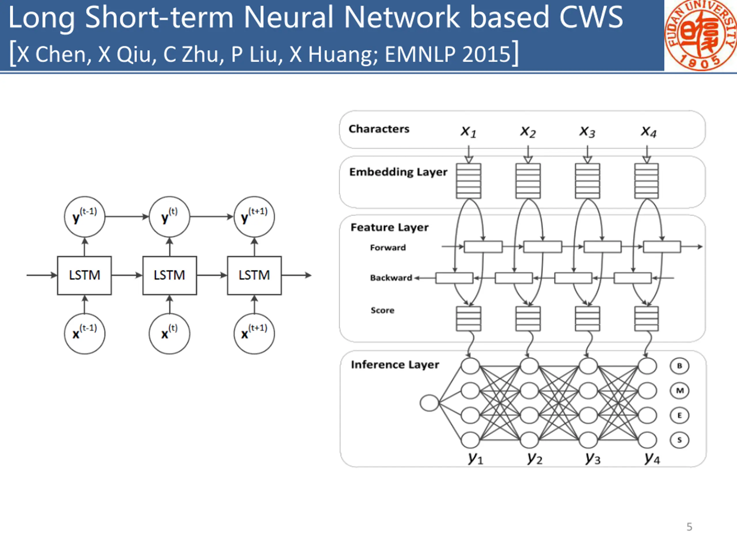 Long Short-term Neural Network based CWS [X Chen, X Qiu, C Zhu, P Liu, X Huang; EMNLP 2015] 5
