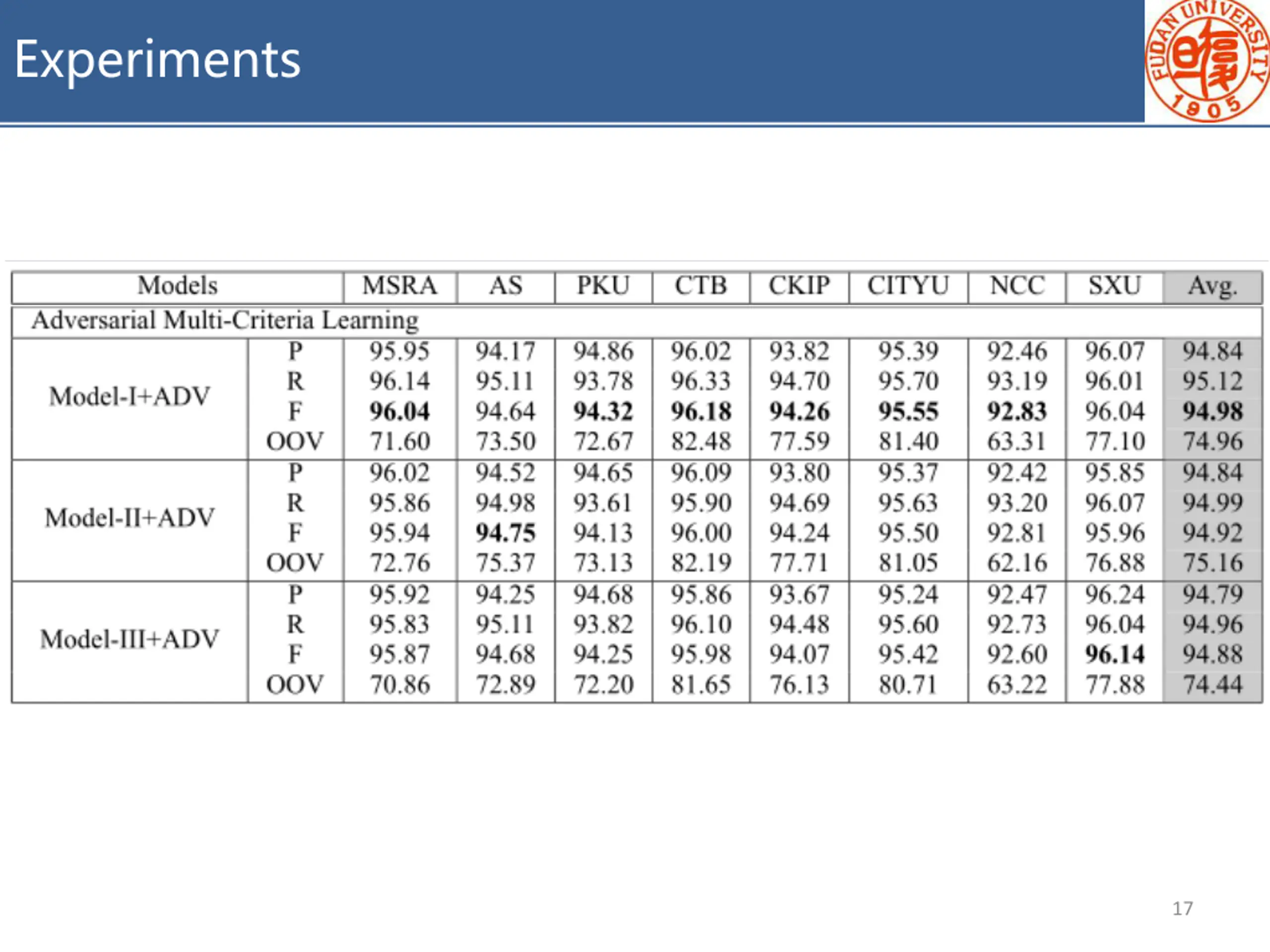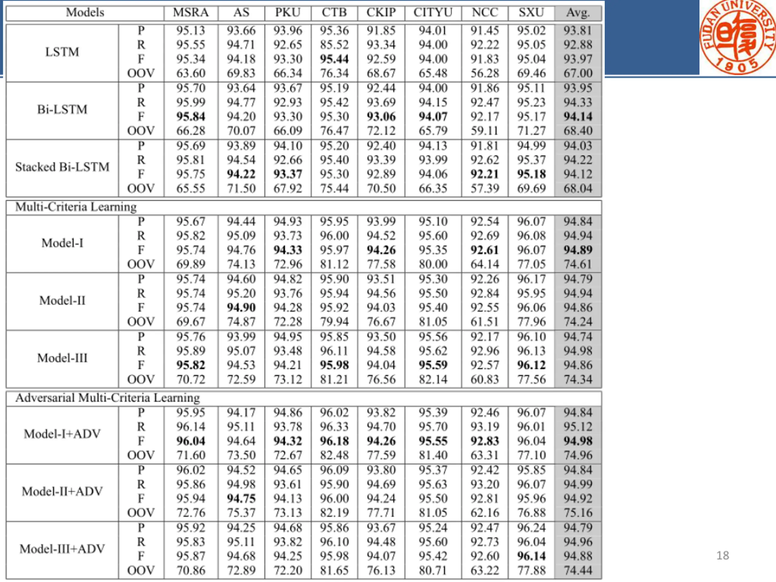Adversarial Multi-Criteria Learning for Chinese Word Segmentation [X Chen, Zhan Shi, X Qiu, X Huang; ACL 2017] 7