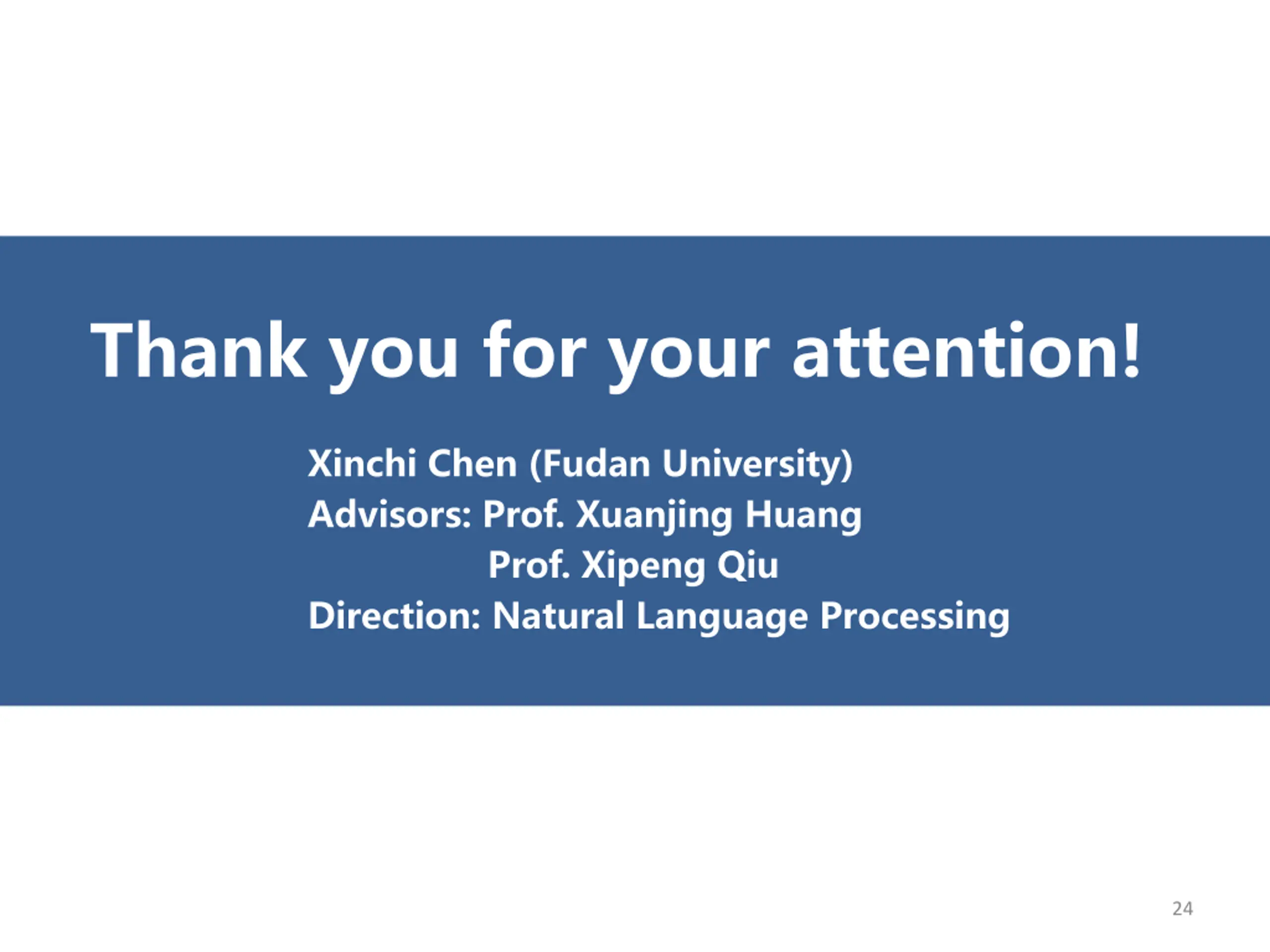Thank you for your attention! Xinchi Chen (Fudan University) Advisors: Prof. Xuanjing Huang Prof. Xipeng Qiu Direction: Natural Language Processing 24
