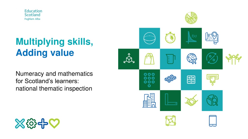 Curriculum What is working consistently well? The commitment of staff to improve the curriculum in numeracy and mathematics, building on proven strengths and tackling key areas for improvement. Staff s investment in career-long professional learning in aspects of numeracy and mathematics. The clarity which settings and schools have achieved in shared understanding of the key features of national, local and establishment policies, for numeracy and mathematics, which seek to improve outcomes for all children and young people. For Scotland's learners, with Scotland's educators Multiplying skills, adding value