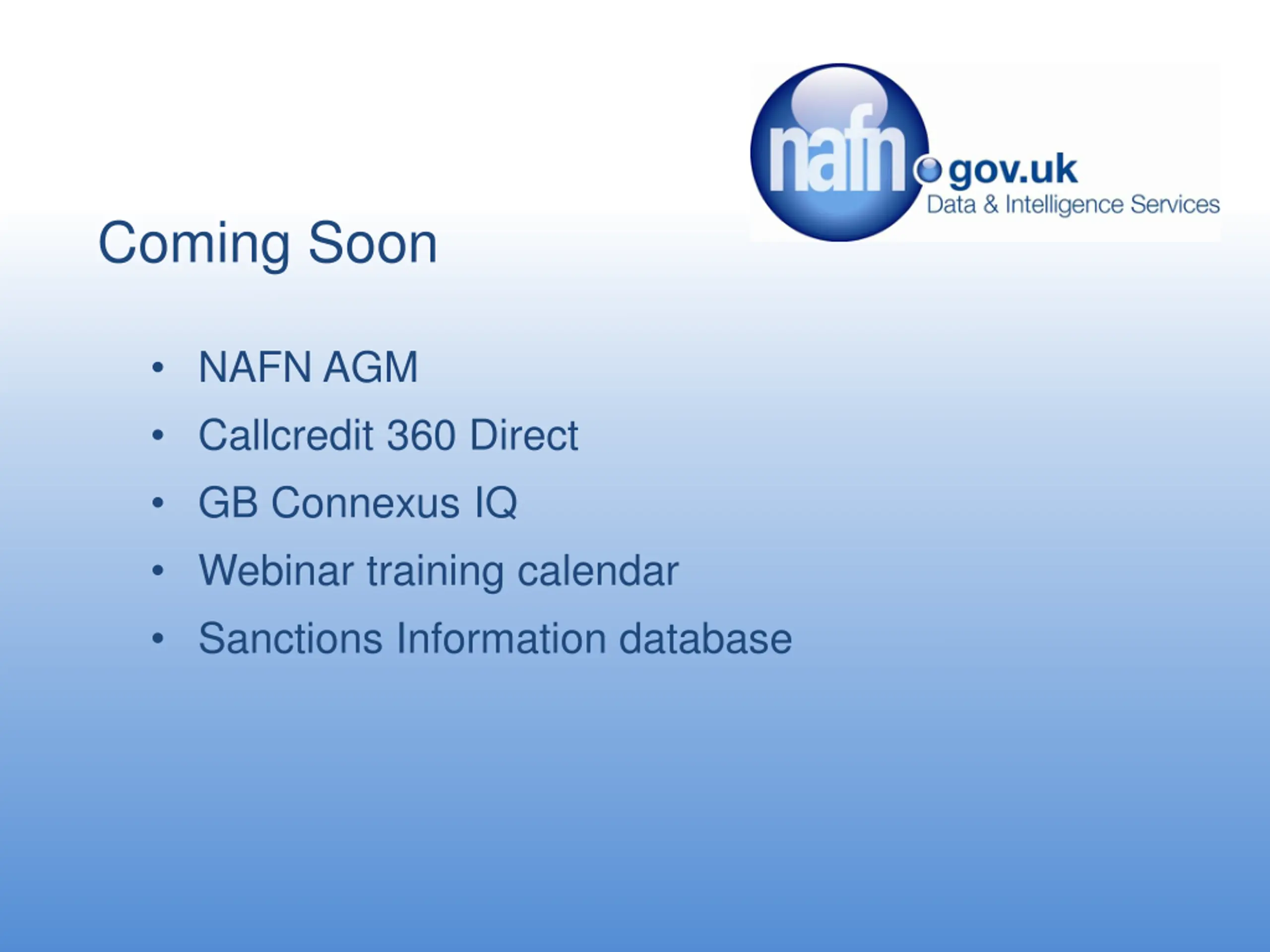 Coming Soon NAFN AGM Callcredit 360 Direct GB Connexus IQ Webinar training calendar Sanctions Information database