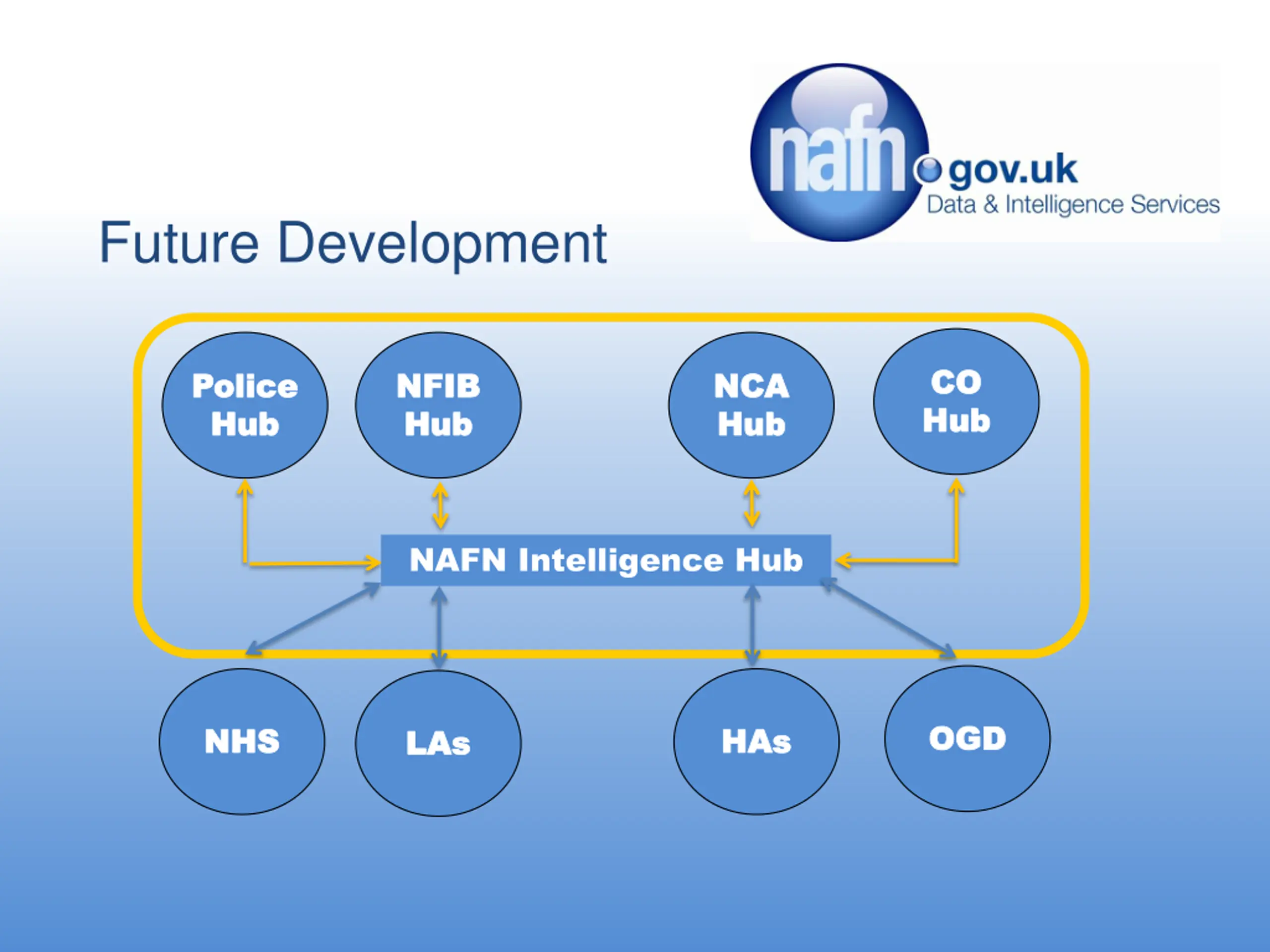 Future Development CO CO Hub Hub Police Police Hub Hub NFIB NFIB Hub Hub NCA NCA Hub Hub NAFN Intelligence Hub OGD OGD NHS NHS HAs HAs LAs LAs
