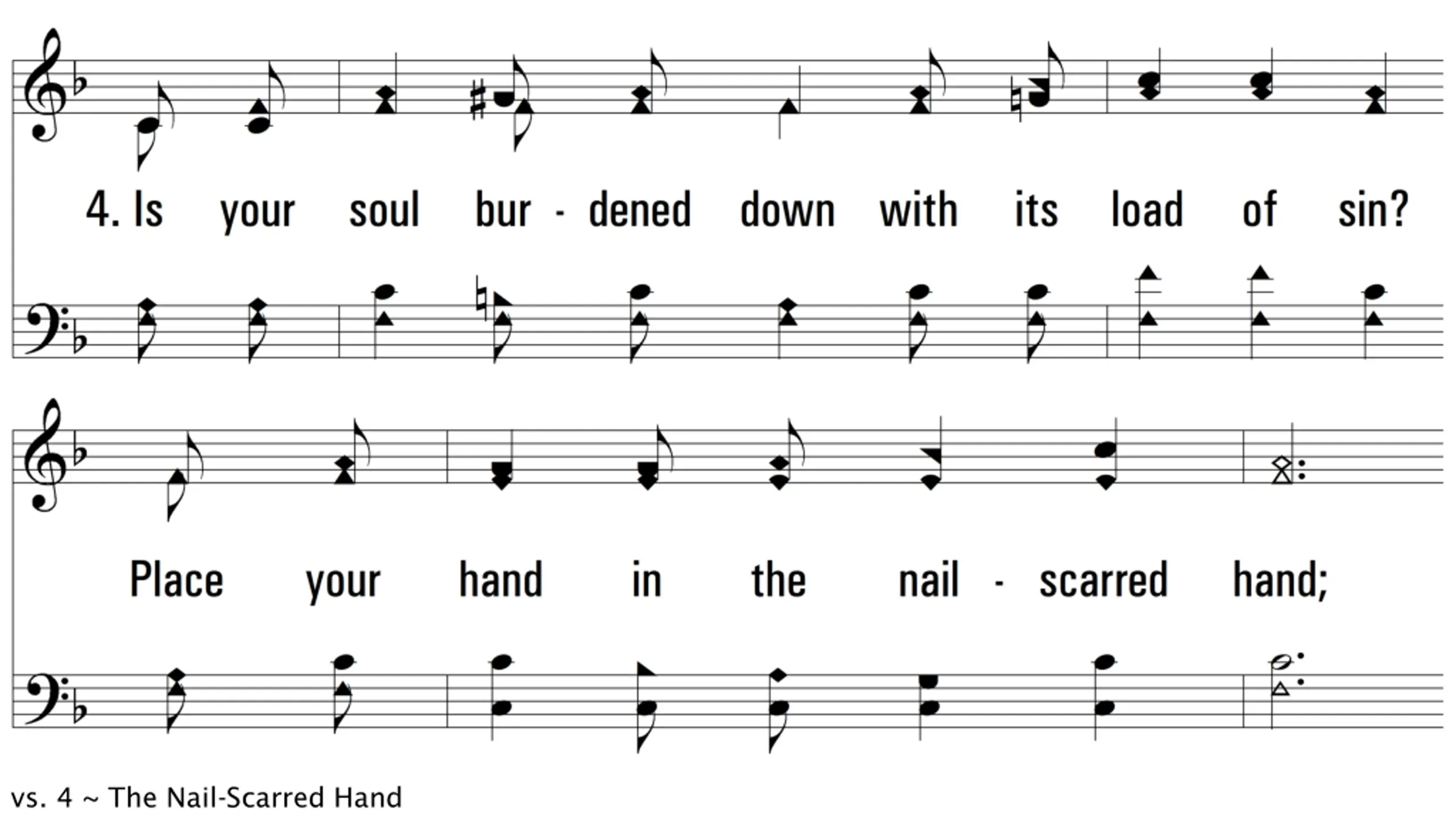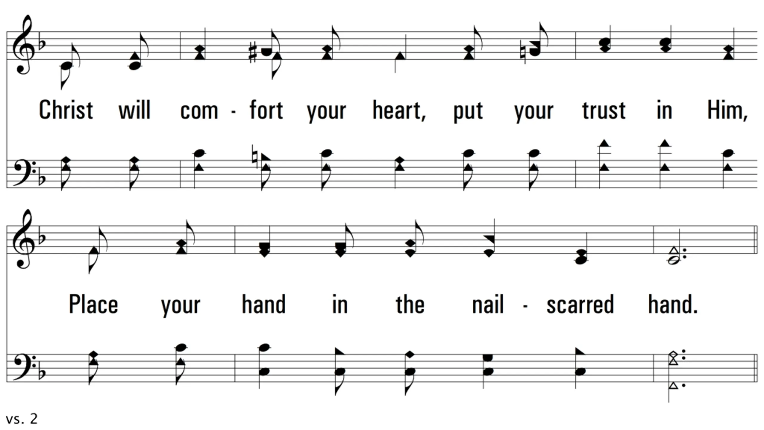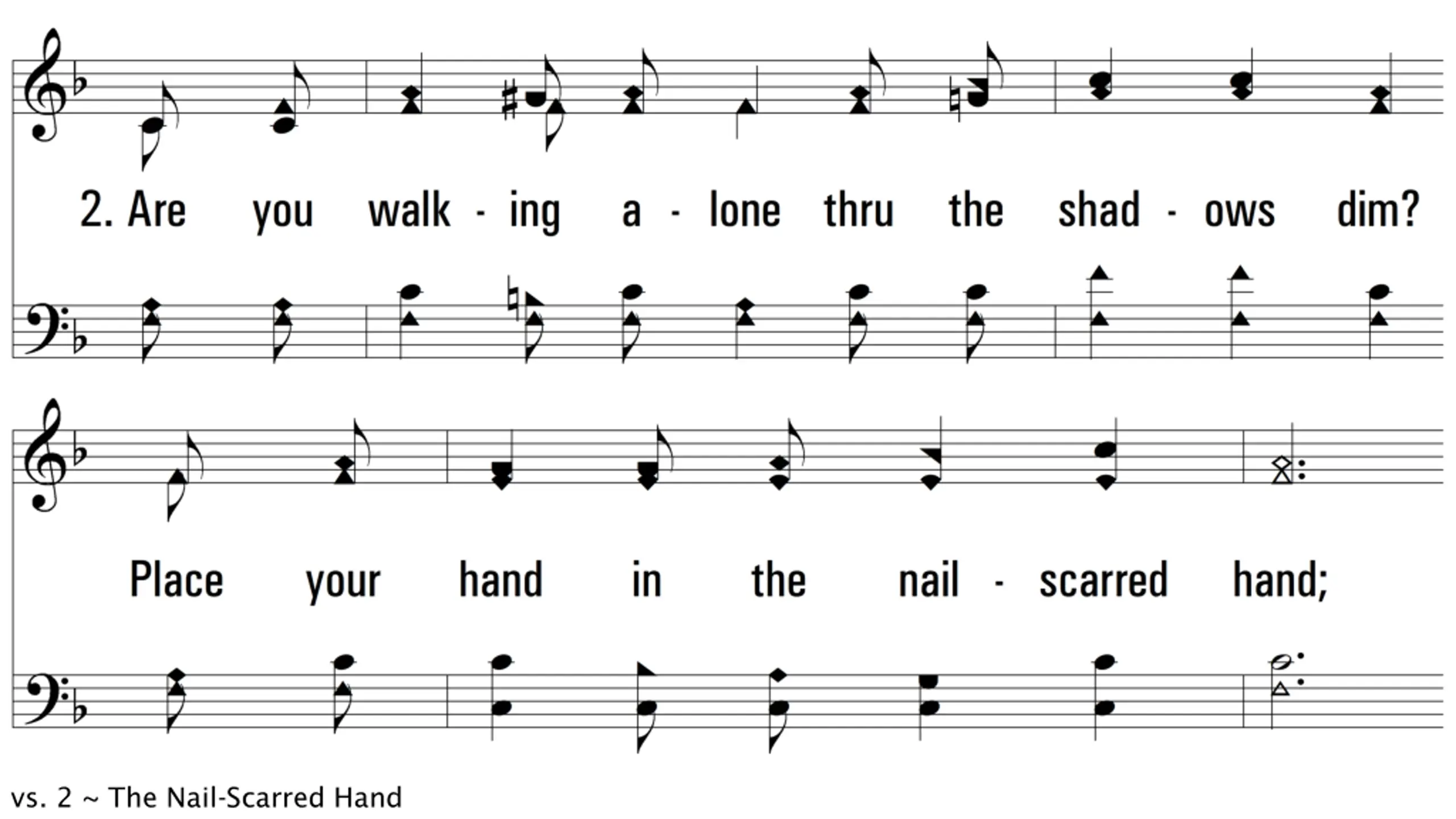 Explore the powerful hymn "The Nail-Scarred Hand" by Baylus B. McKinney with lead, alto, tenor, and bass parts in a 4/4 F/C time signature. Dive into the verses and chorus with captivating images. Experience the message and emotion of this timeless hymn through visual storytelling.
