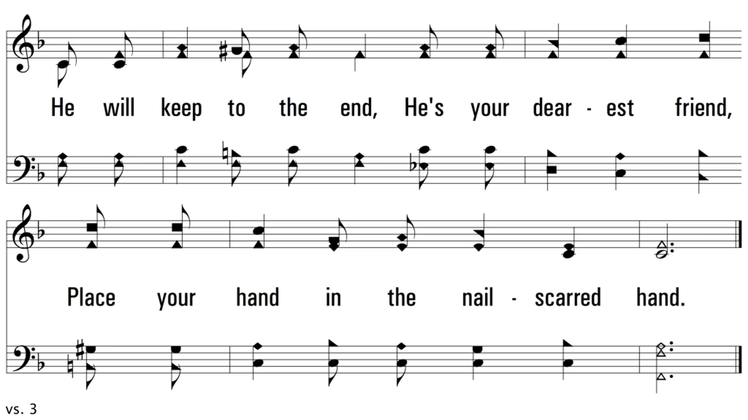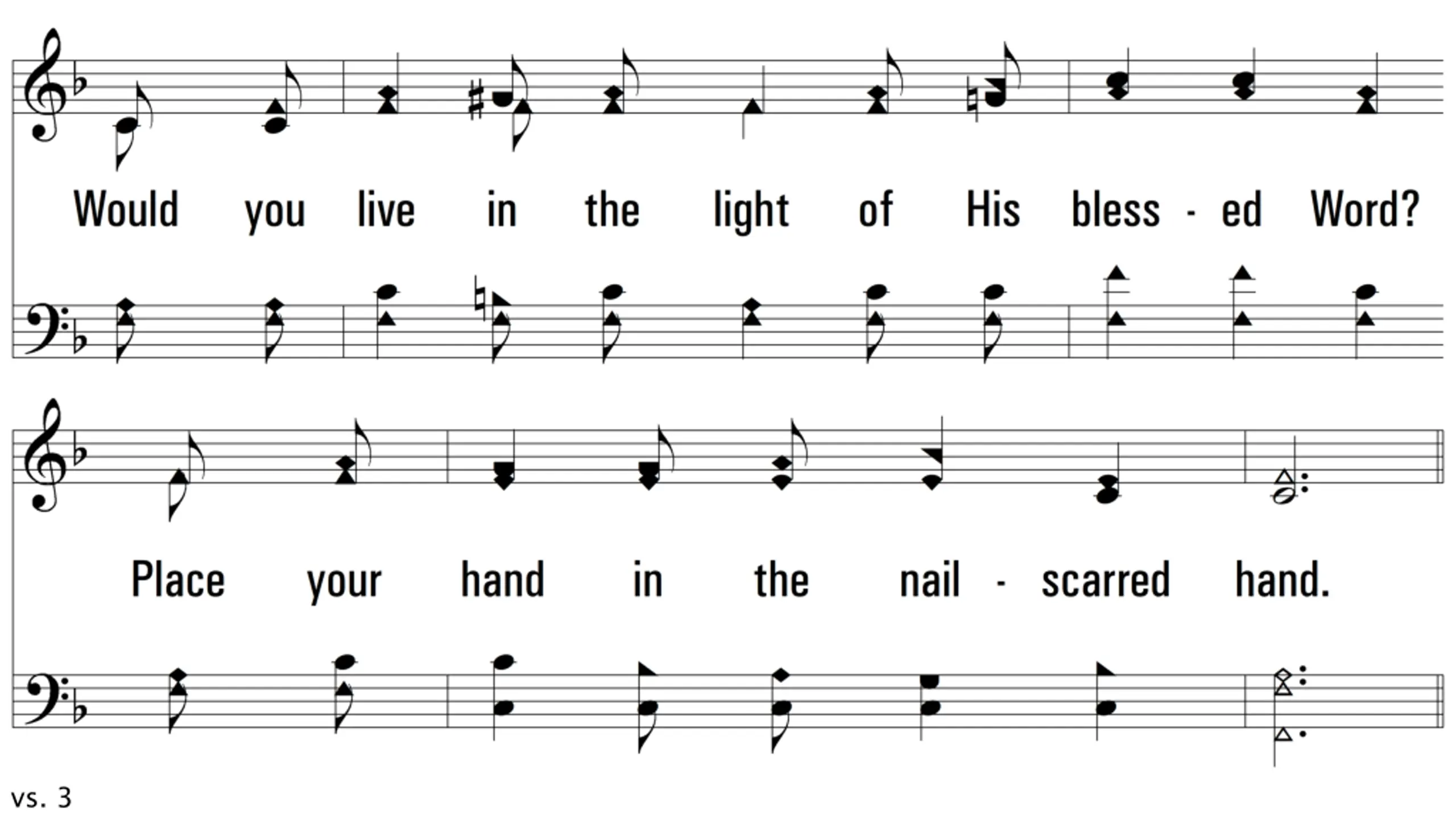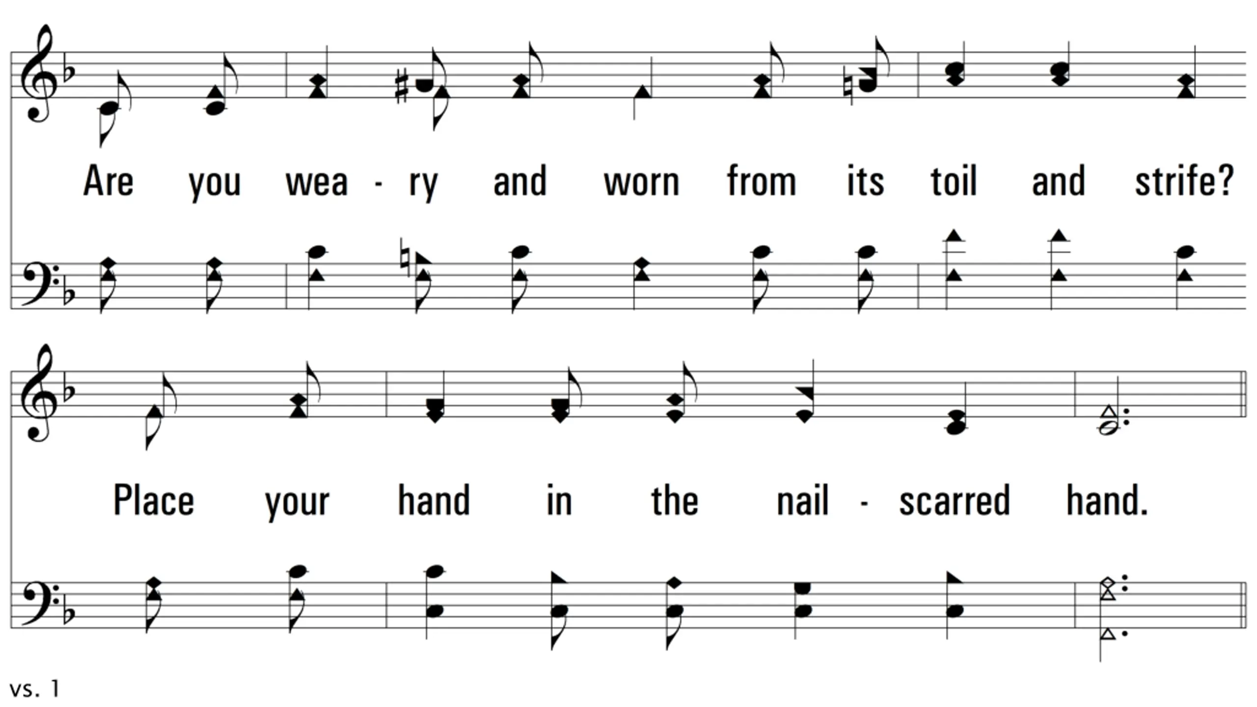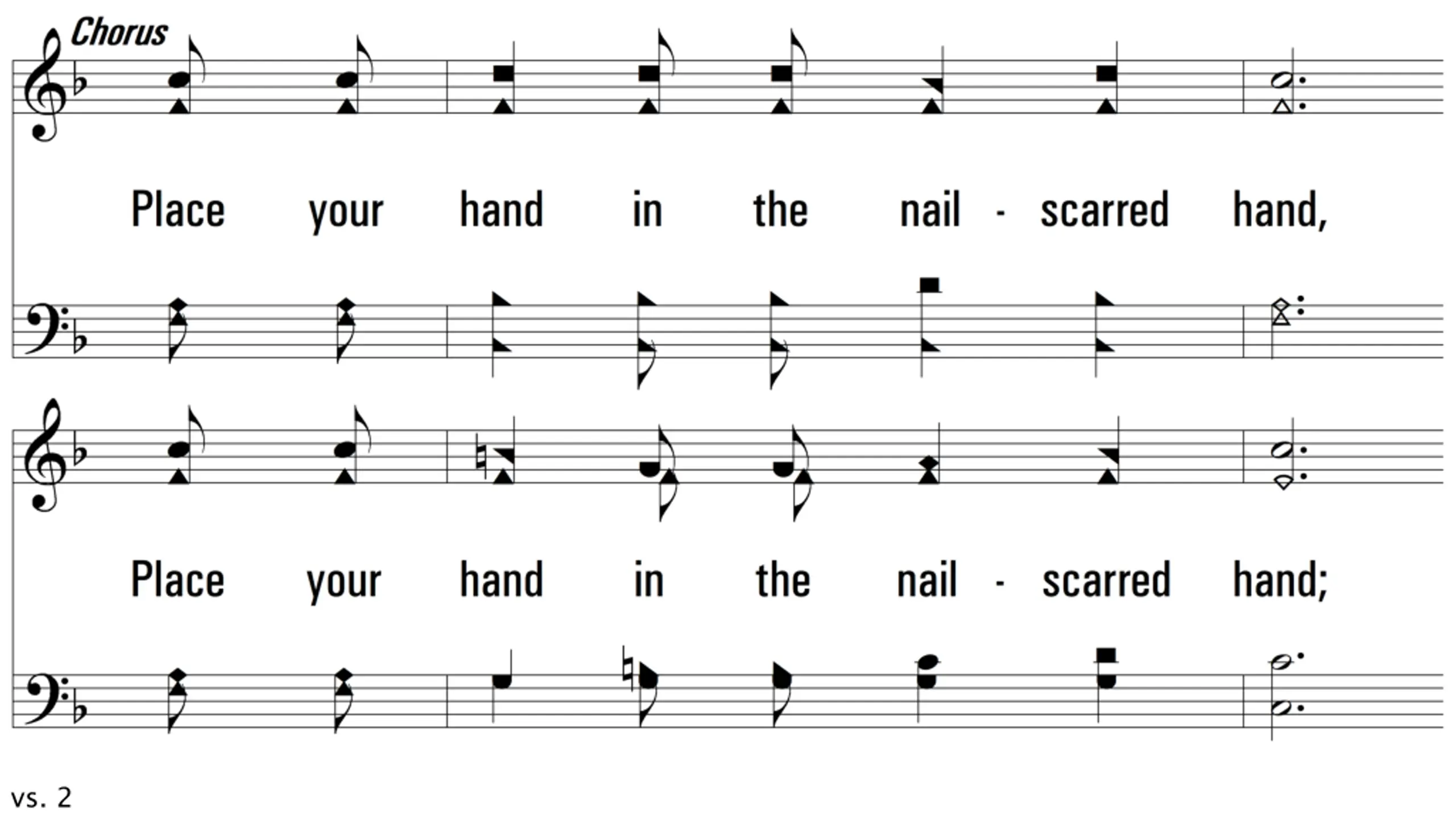 Explore the powerful hymn "The Nail-Scarred Hand" by Baylus B. McKinney with lead, alto, tenor, and bass parts in a 4/4 F/C time signature. Dive into the verses and chorus with captivating images. Experience the message and emotion of this timeless hymn through visual storytelling.