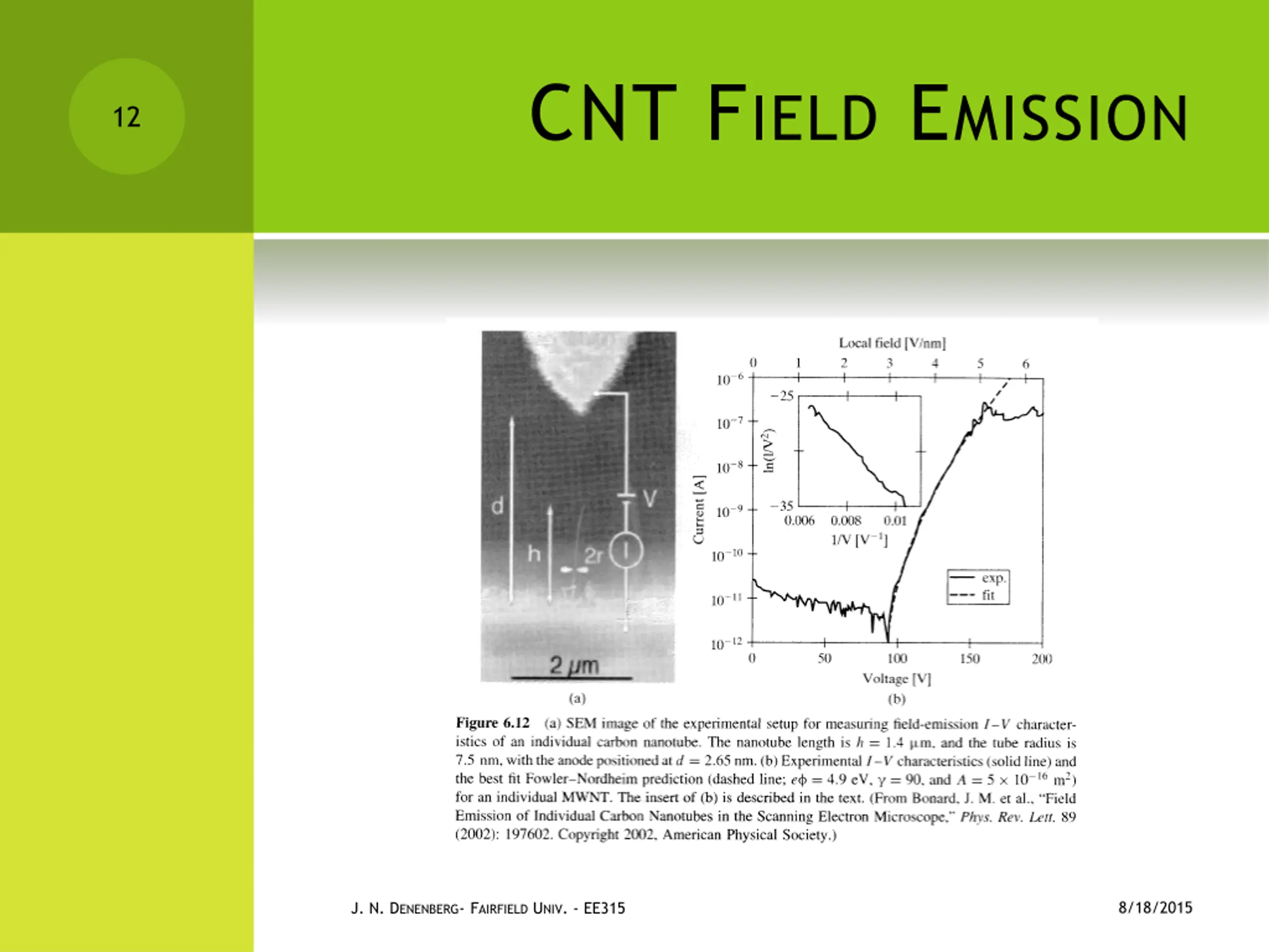 CNT FIELD EMISSION 12 8/18/2015 J. N. DENENBERG- FAIRFIELD UNIV. - EE315