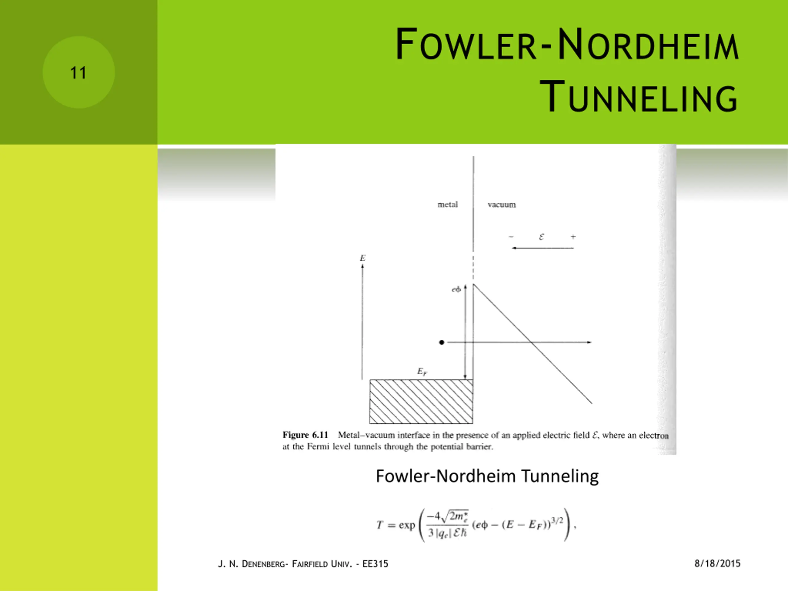 FOWLER-NORDHEIM TUNNELING 11 Fowler-Nordheim Tunneling 8/18/2015 J. N. DENENBERG- FAIRFIELD UNIV. - EE315