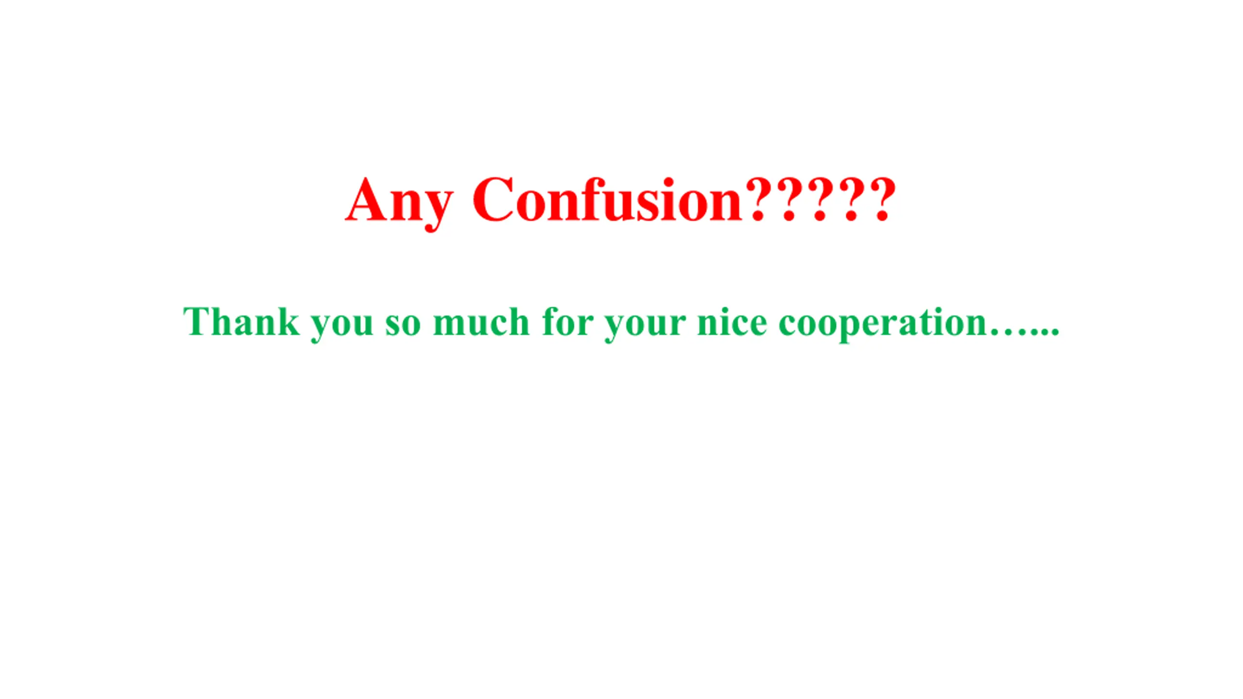 Any Confusion????? Thank you so much for your nice cooperation ...