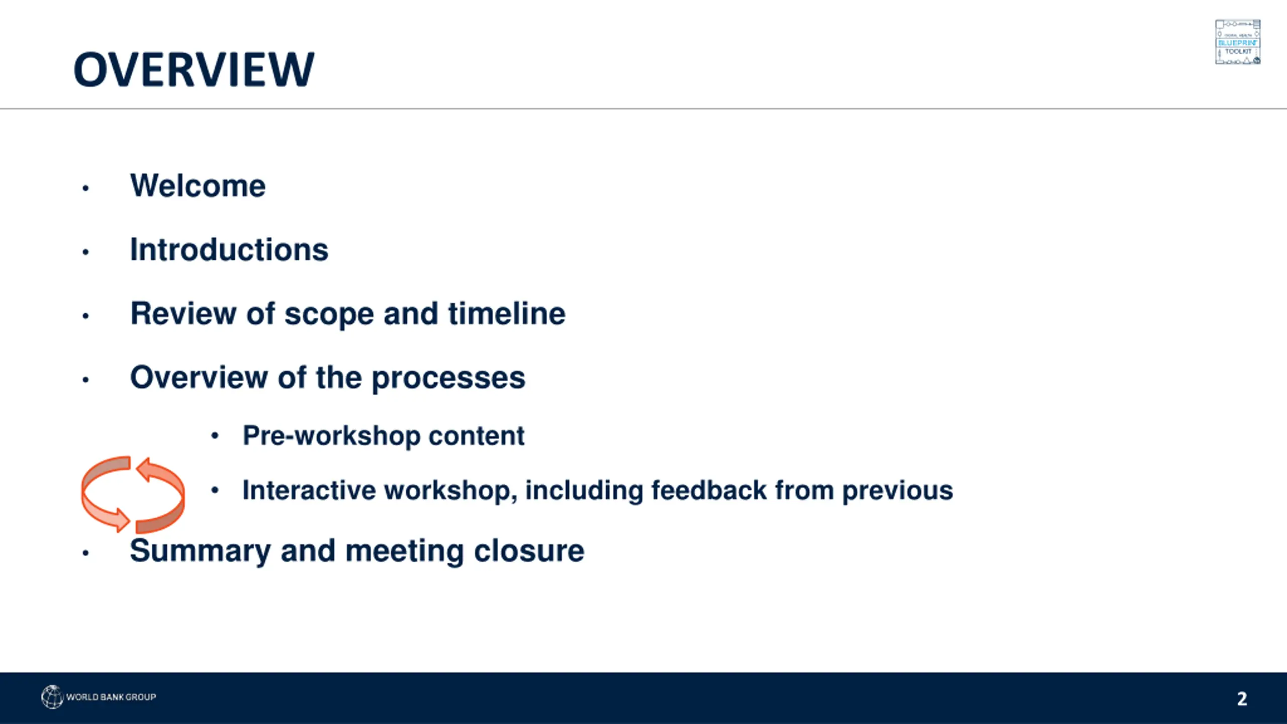 OVERVIEW Welcome Introductions Review of scope and timeline Overview of the processes Pre-workshop content Interactive workshop, including feedback from previous Summary and meeting closure 2