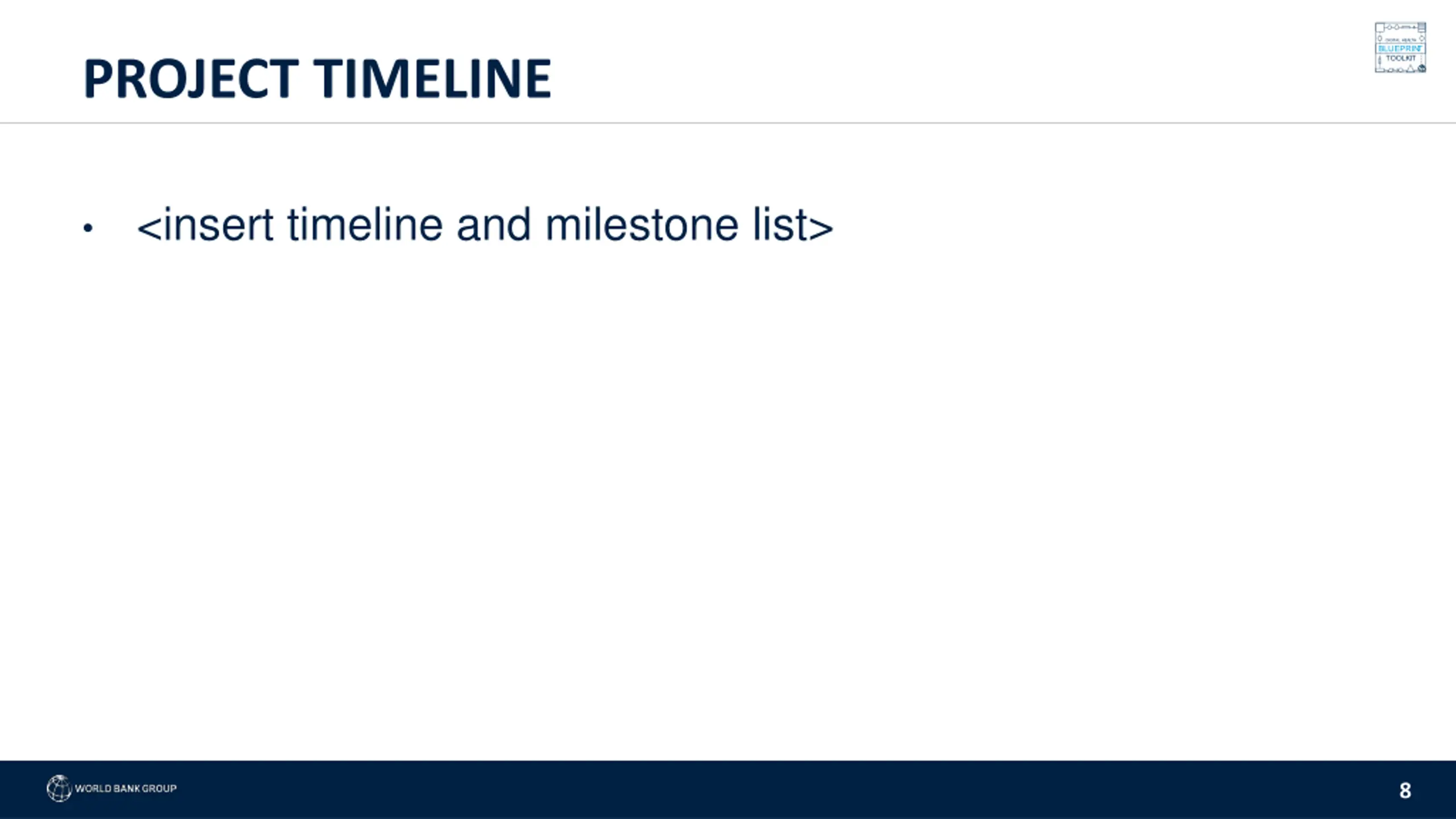 PROJECT TIMELINE <insert timeline and milestone list> 8