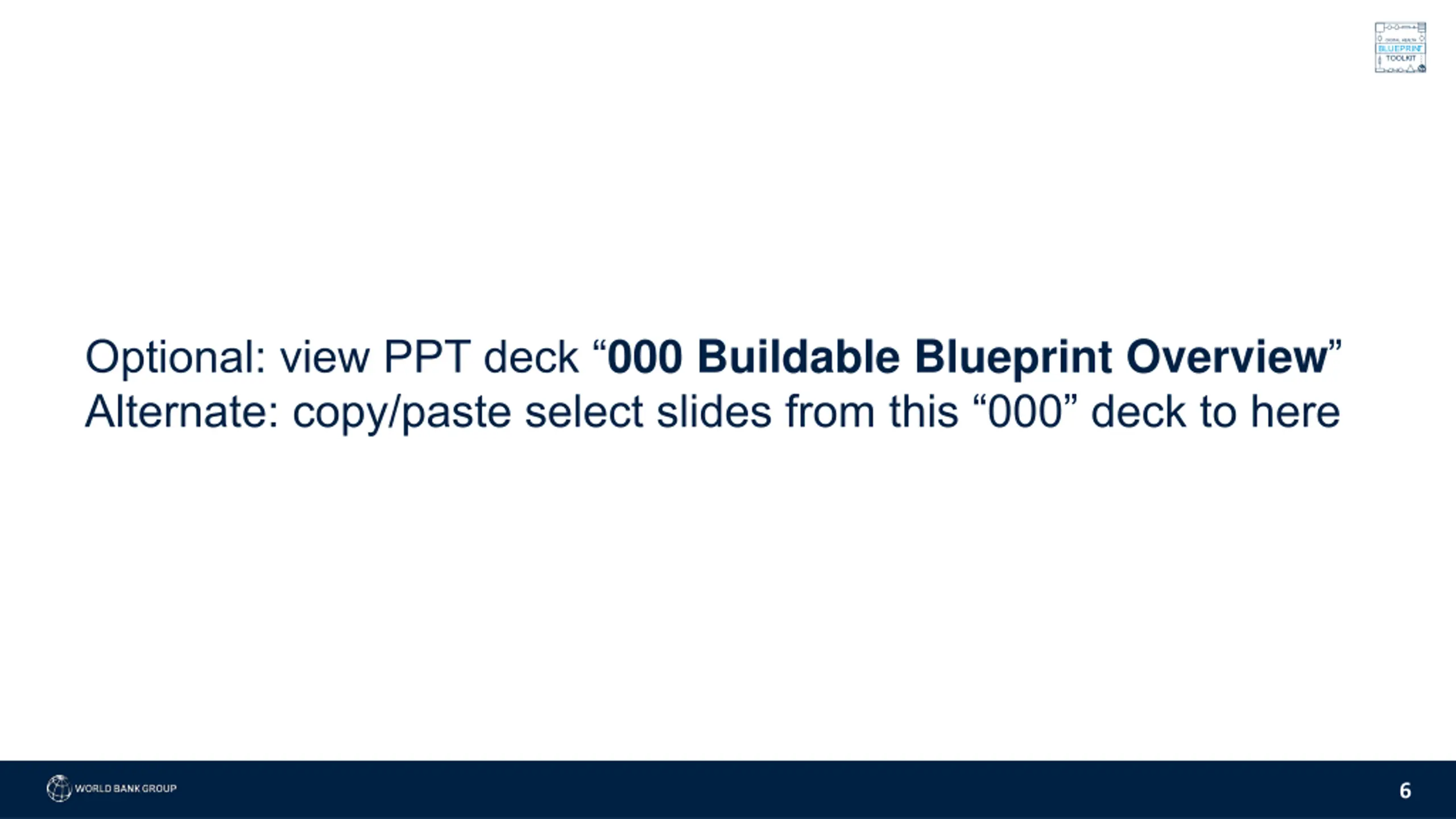 ptional: view deck 000 Buildable Blueprint Overview lternate: copy/paste select slides from this 000 deck to here 6