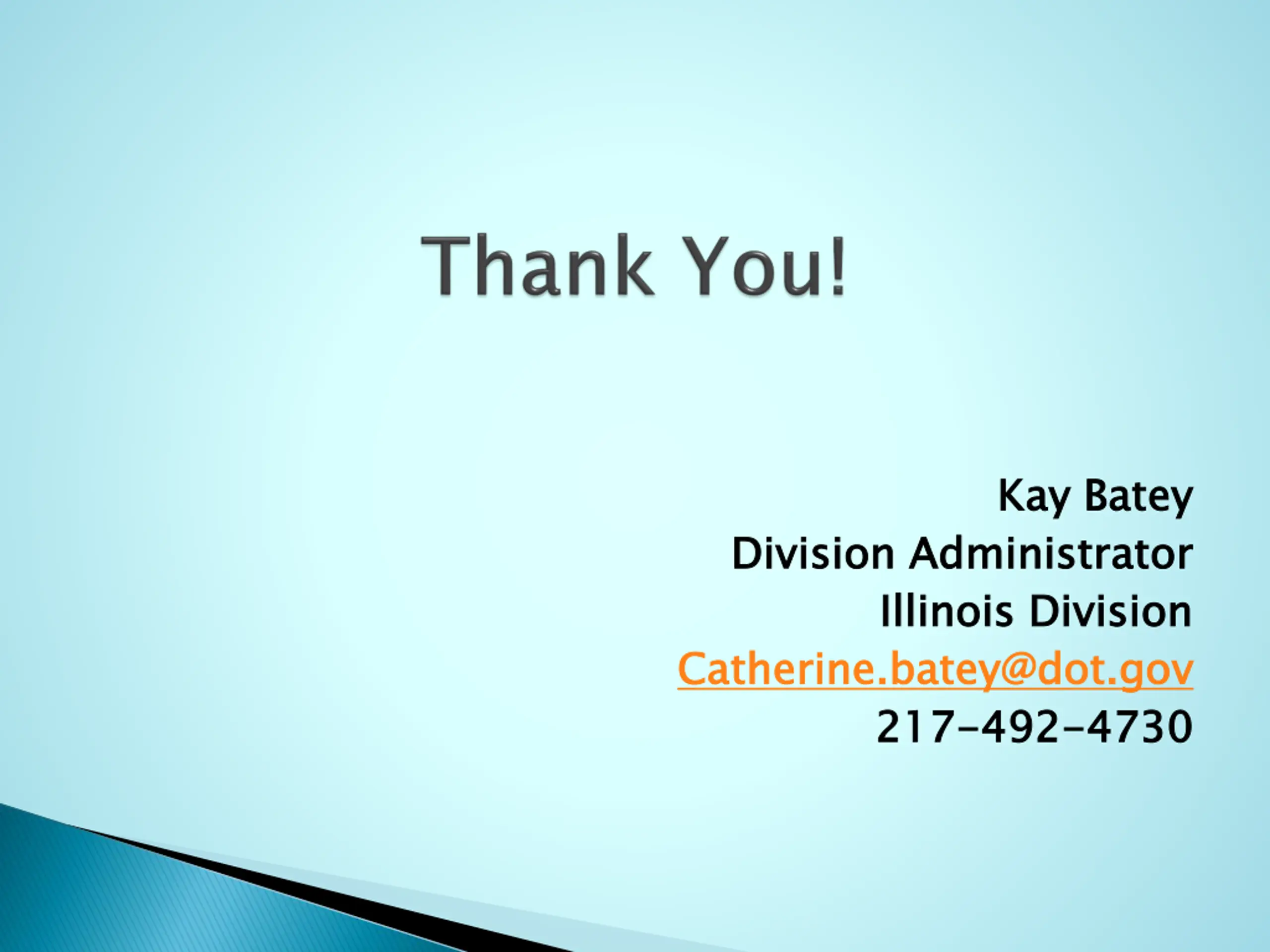 Kay Batey Kay Batey Division Administrator Illinois Division Catherine.batey@dot.gov 217 Division Administrator Illinois Division Catherine.batey@dot.gov 217- -492 492- -4730 4730