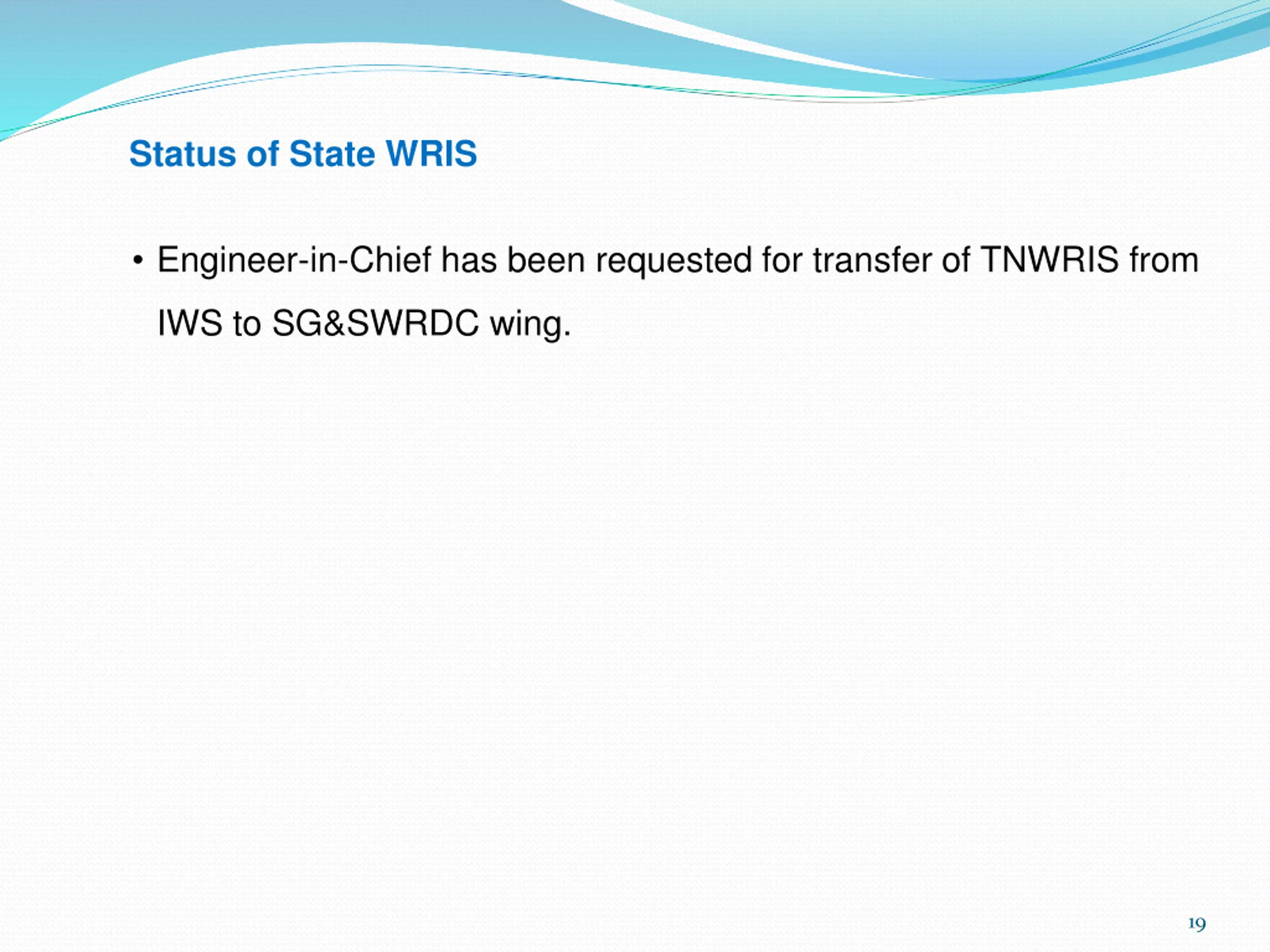 Status of State WRIS Engineer-in-Chief has been requested for transfer of TNWRIS from IWS to SG&SWRDC wing. 19