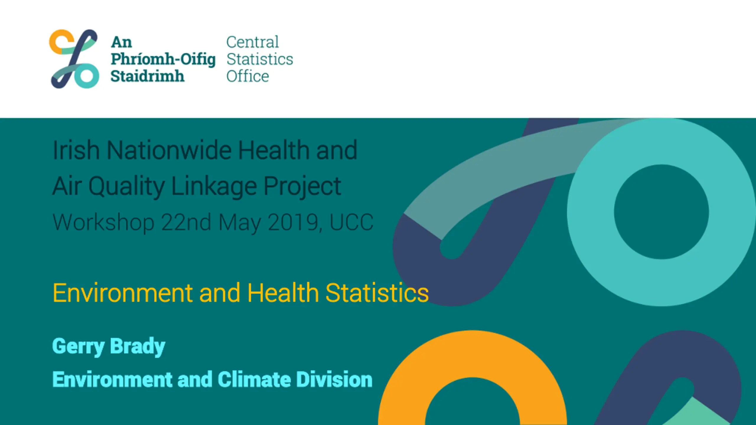 Irish Nationwide Health and Irish Nationwide Health and Air Quality Linkage Project Air Quality Linkage Project Workshop 22nd May 2019, UCC Environment and Health Statistics Environment and Health Statistics Gerry Brady Gerry Brady Environment and Climate Division Environment and Climate Division