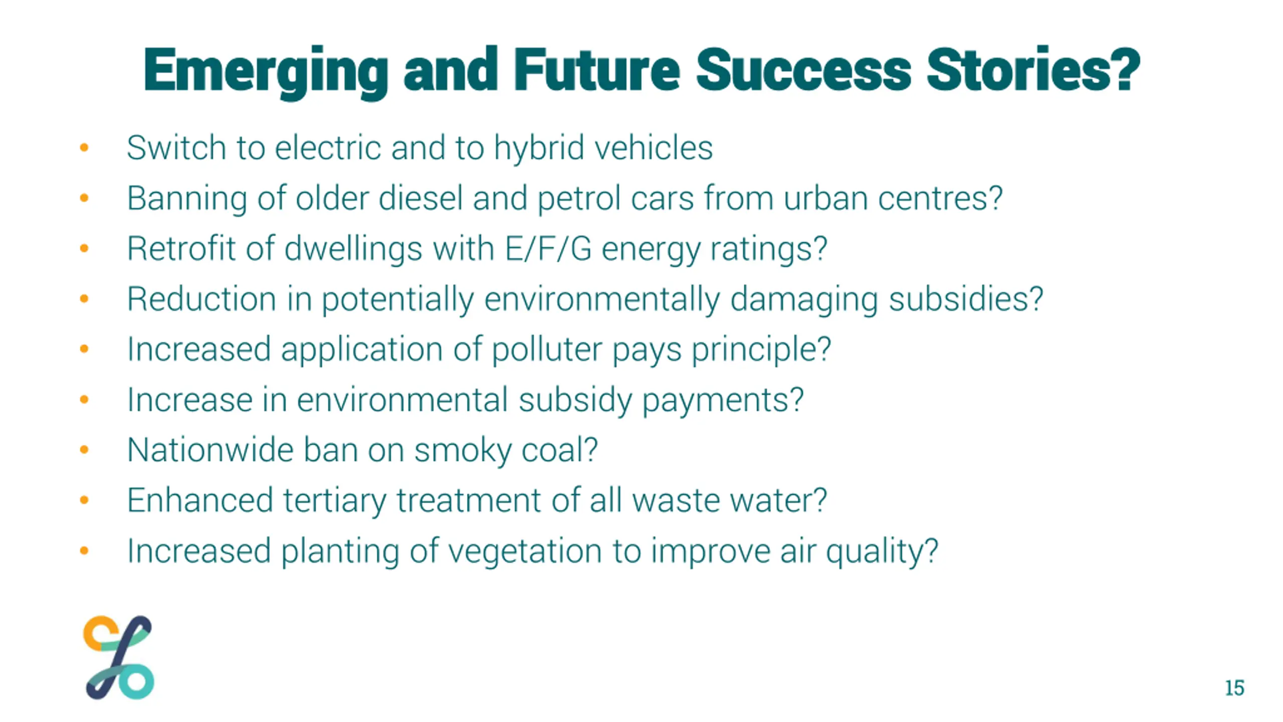 Emerging and Future Success Stories? Emerging and Future Success Stories? Switch to electric and to hybrid vehicles Banning of older diesel and petrol cars from urban centres? Retrofit of dwellings with E/F/G energy ratings? Reduction in potentially environmentally damaging subsidies? Increased application of polluter pays principle? Increase in environmental subsidy payments? Nationwide ban on smoky coal? Enhanced tertiary treatment of all waste water? Increased planting of vegetation to improve air quality? 15