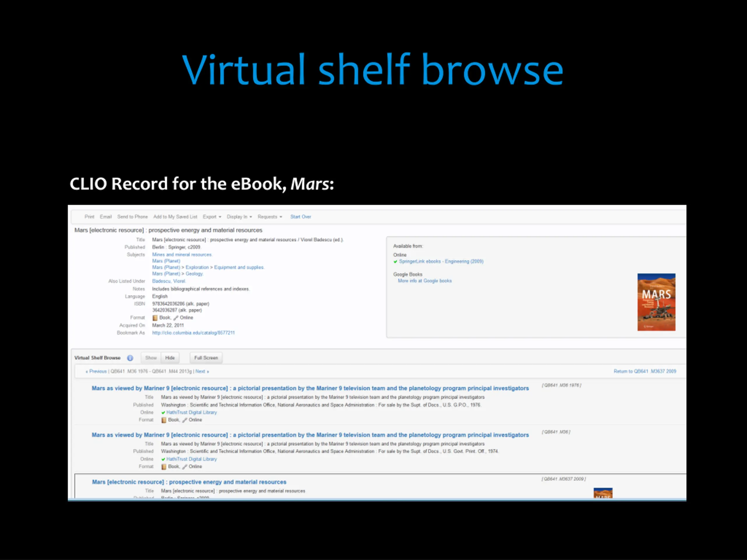 Virtual shelf browse CLIO Record for the eBook, Mars: