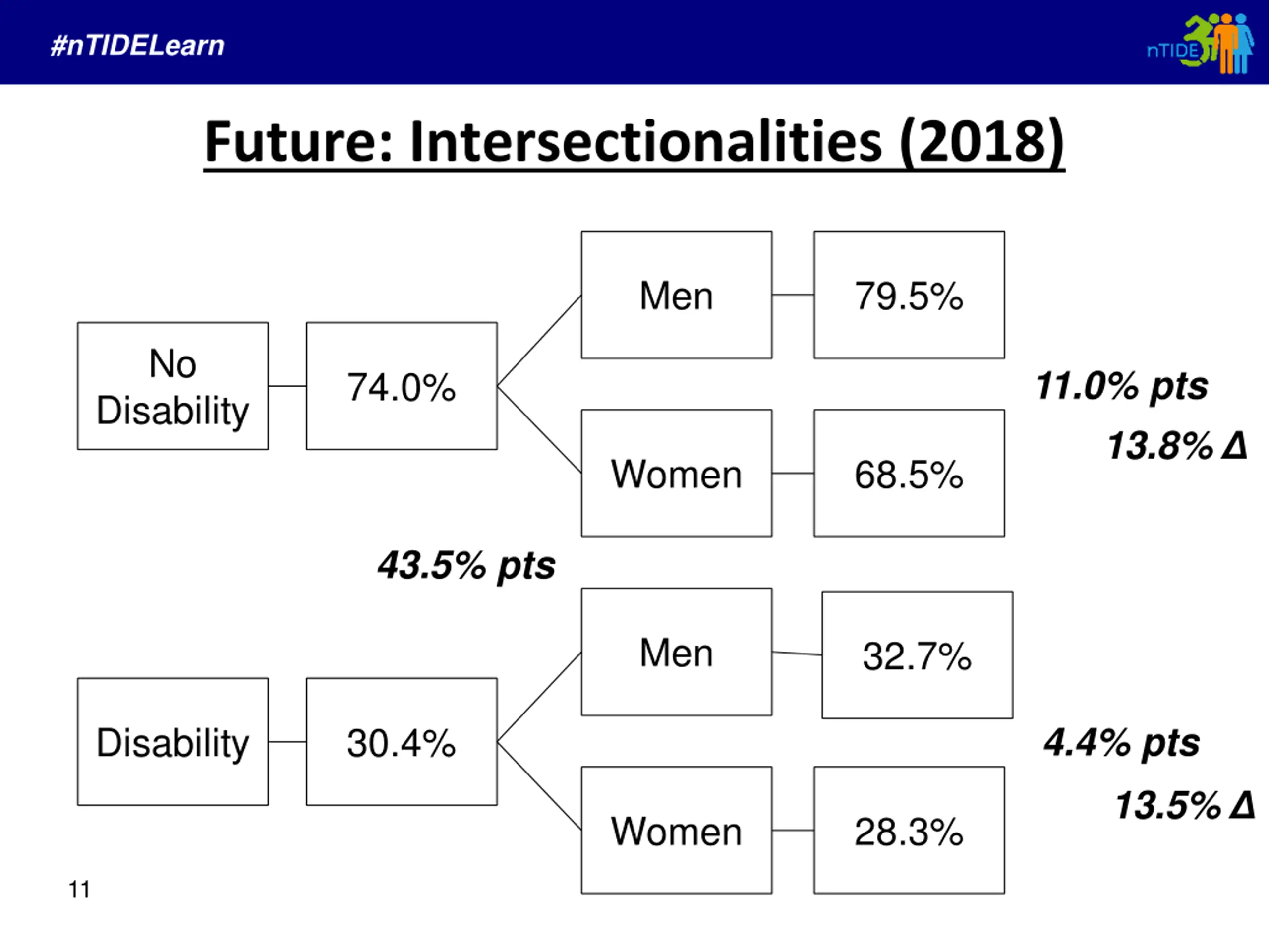 #nTIDELearn Future: Intersectionalities (2018) Men 79.5% No 11.0% pts 13.8% 74.0% Disability Women 68.5% 43.5% pts Men 32.7% 4.4% pts 13.5% Disability 30.4% Women 28.3% 11