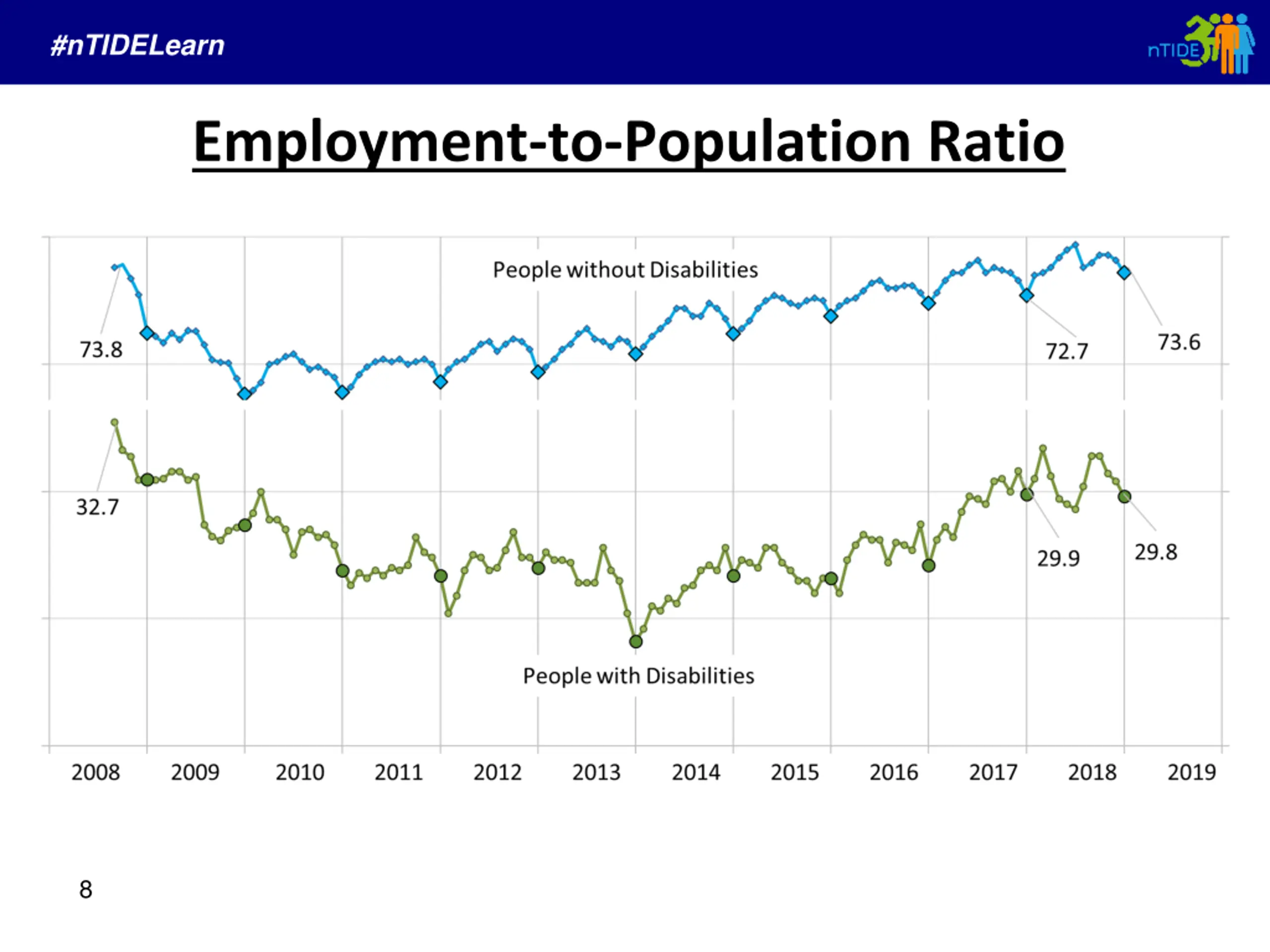 Explore the latest trends in disability and employment through the nTIDE program, featuring reports, data sources, and expert insights from Kessler Foundation and UNH. Learn about the Employment-to-Population Ratio, Labor Force Participation Rate, and future intersectionality projections. Stay informed about key statistics and developments in disability employment.