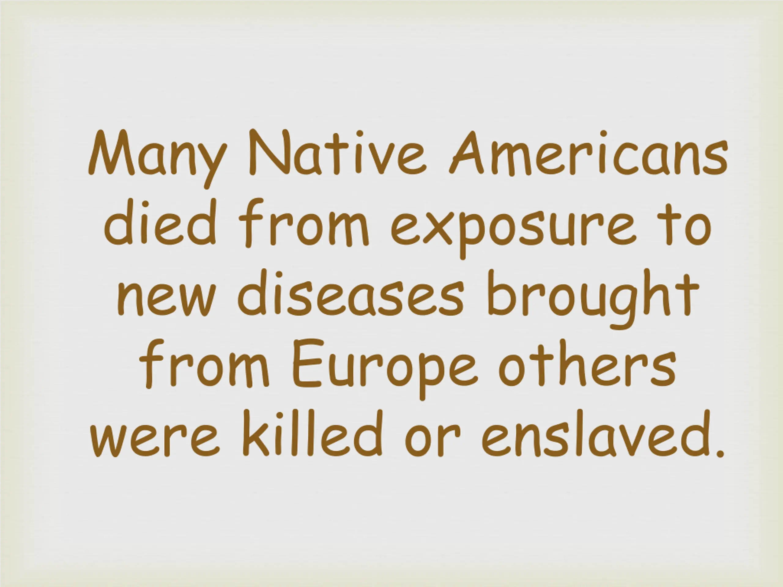 Many Native Americans died from exposure to new diseases brought from Europe others were killed or enslaved.