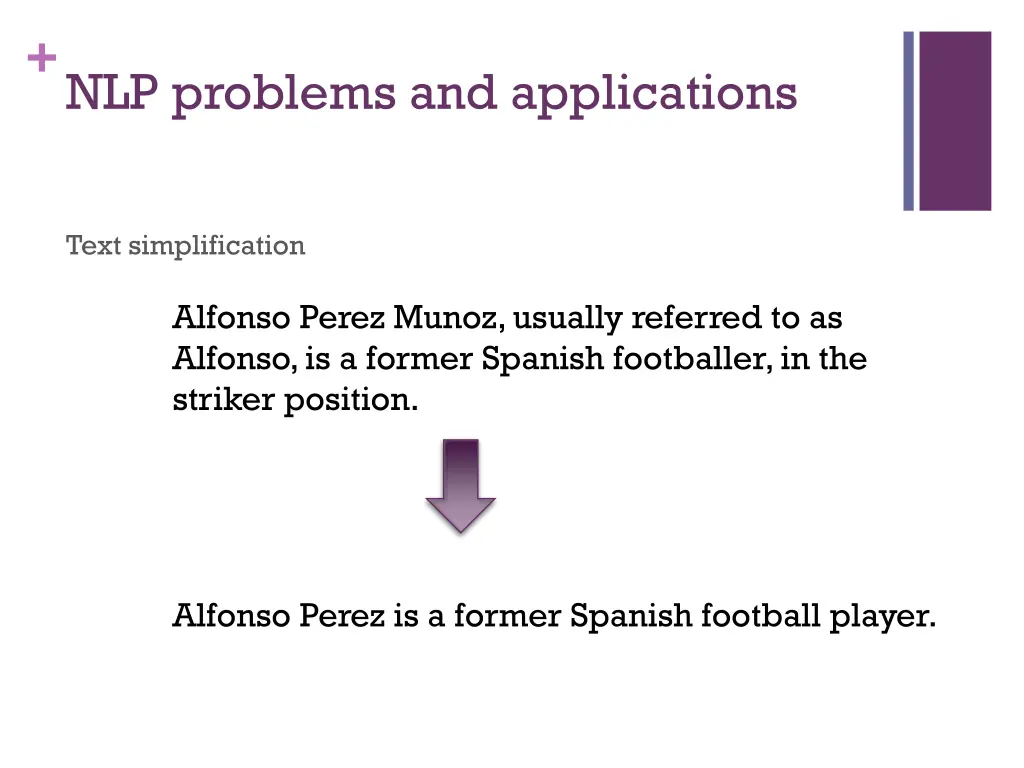 +NLP problems and applications Text simplification Alfonso Perez Munoz, usually referred to as Alfonso, is a former Spanish footballer, in the striker position. Alfonso Perez is a former Spanish football player.