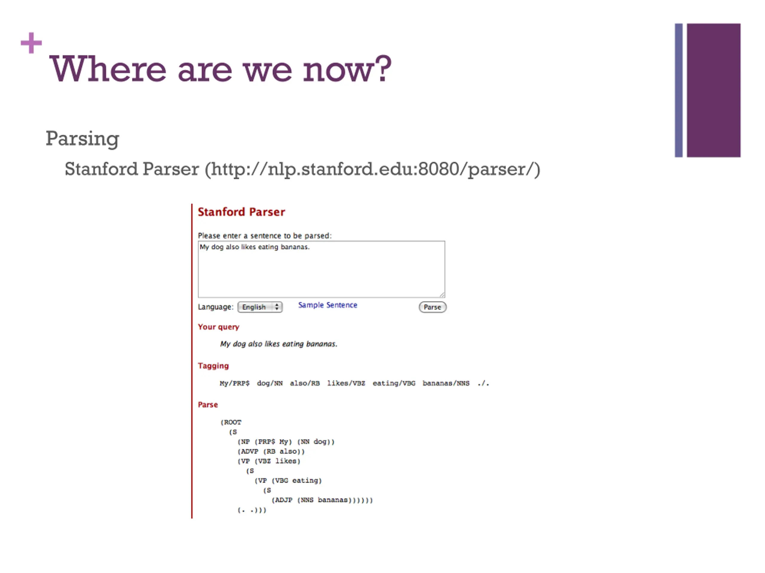 +Where are we now? Parsing Stanford Parser (http://nlp.stanford.edu:8080/parser/)
