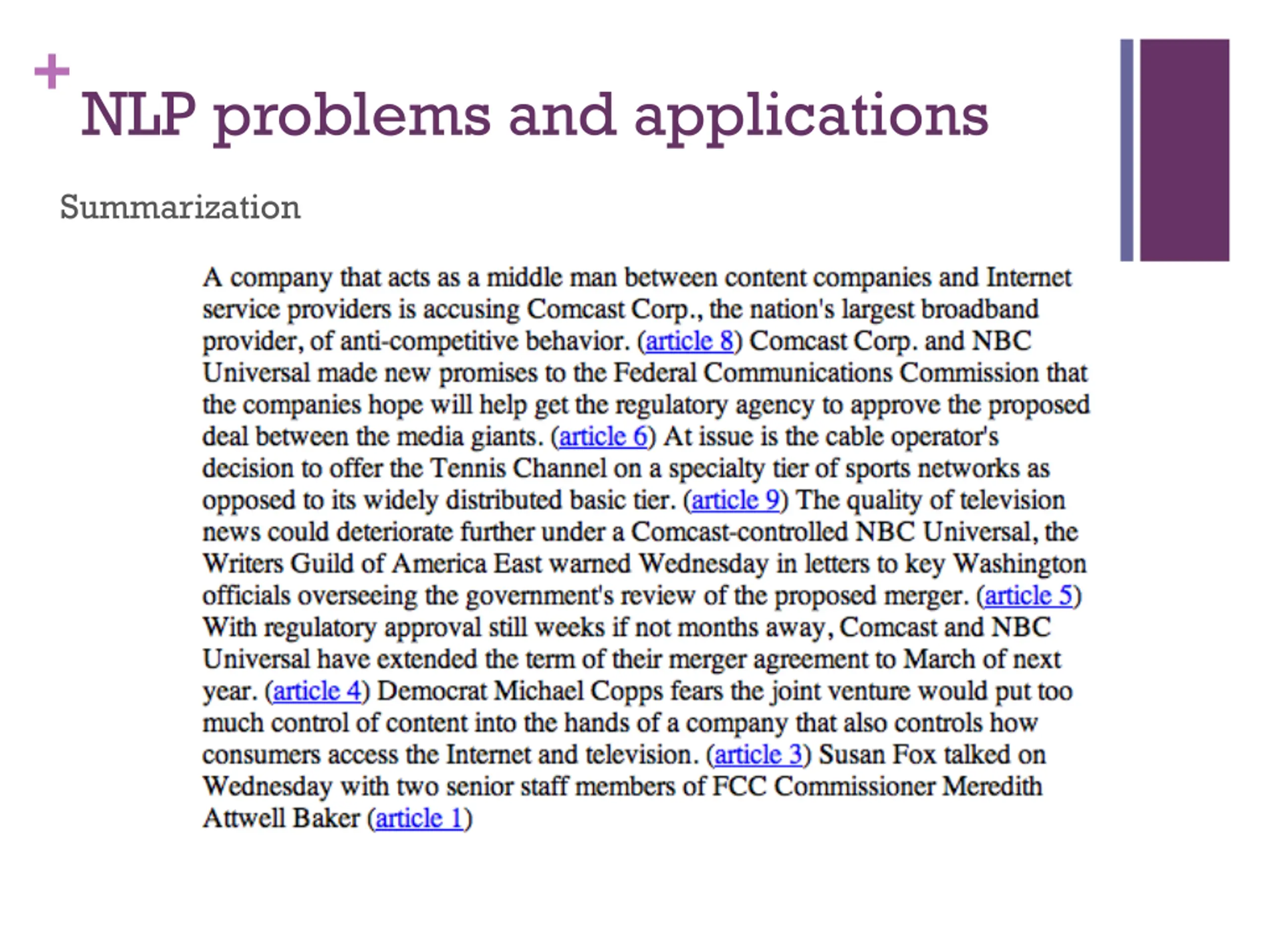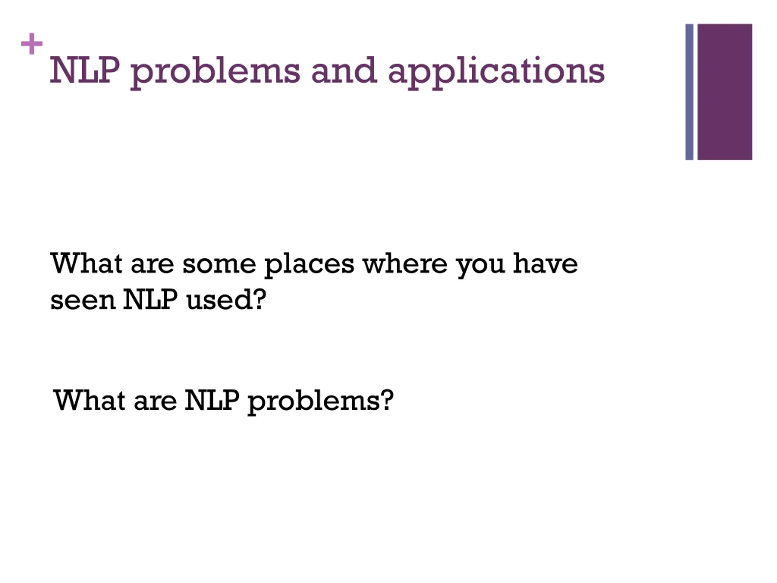 +NLP problems and applications What are some places where you have seen NLP used? What are NLP problems?