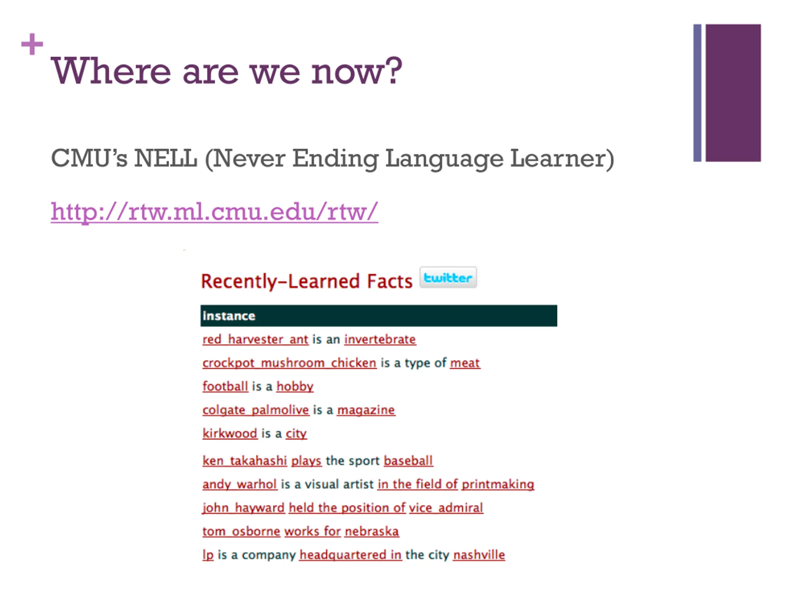 +Where are we now? CMU s NELL (Never Ending Language Learner) http://rtw.ml.cmu.edu/rtw/