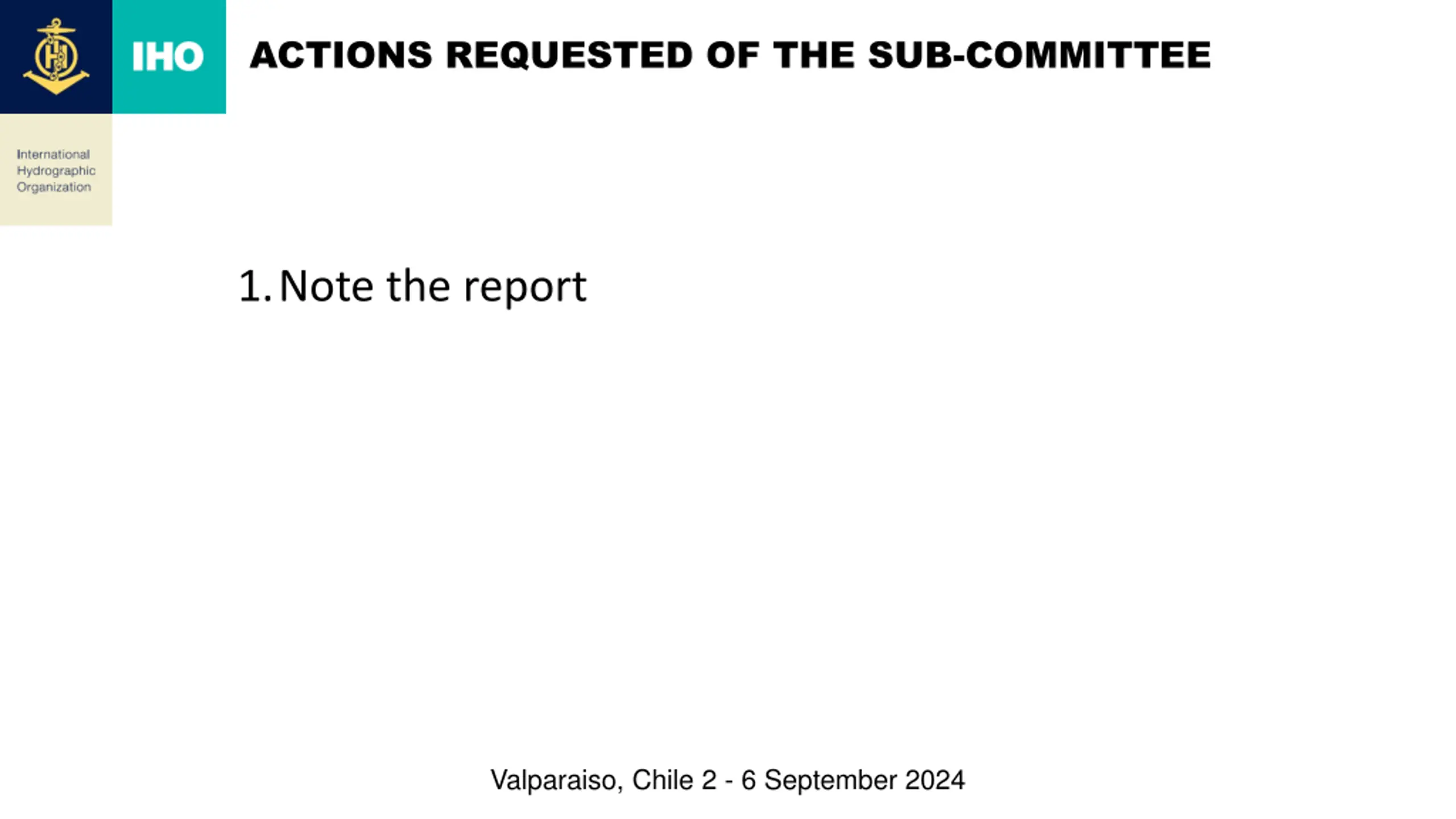 ACTIONS REQUESTED OF THE SUB-COMMITTEE 1.Note the report Valparaiso, Chile 2 - 6 September 2024
