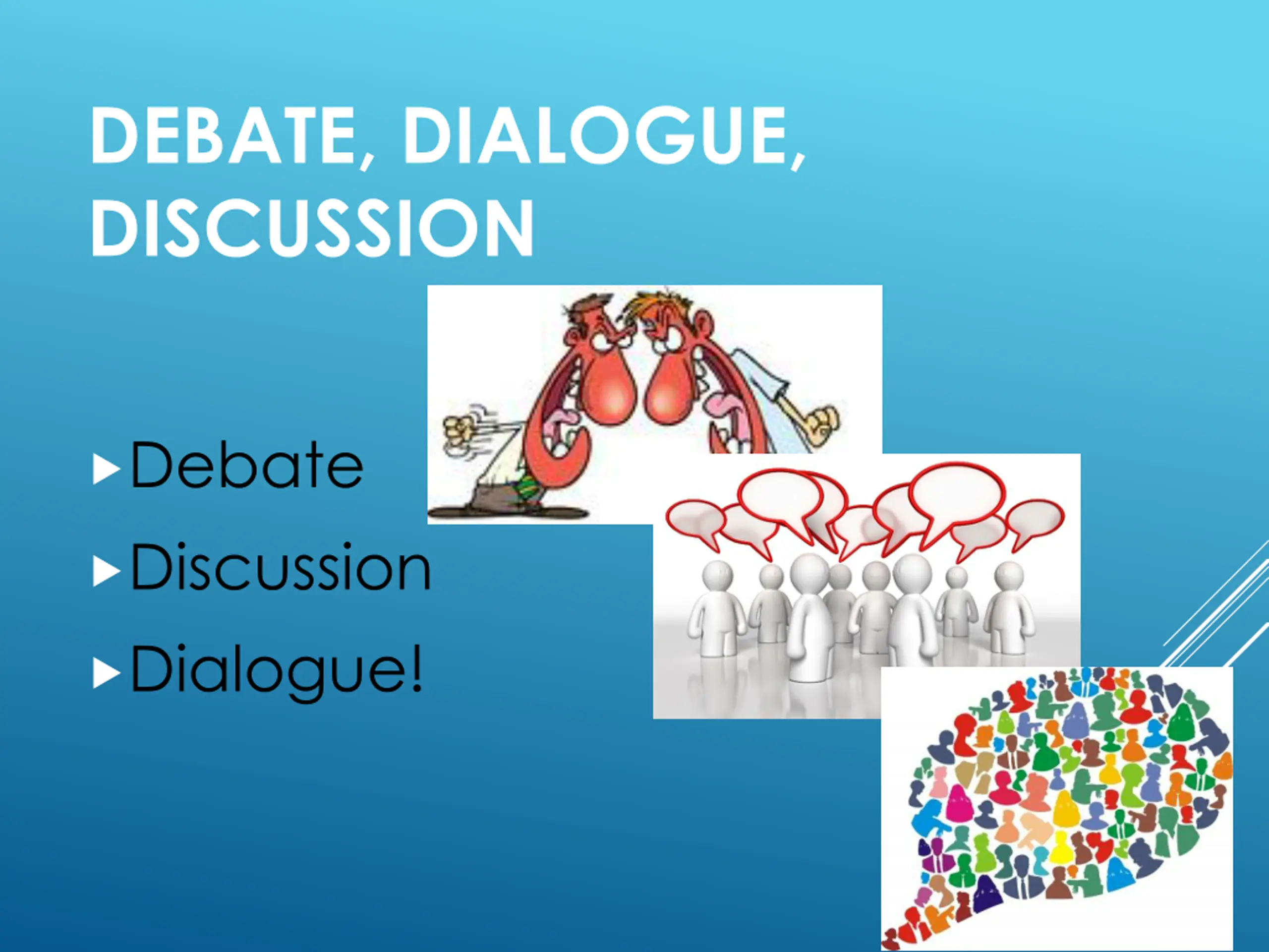DEBATE, DIALOGUE, DISCUSSION Debate Discussion Dialogue!