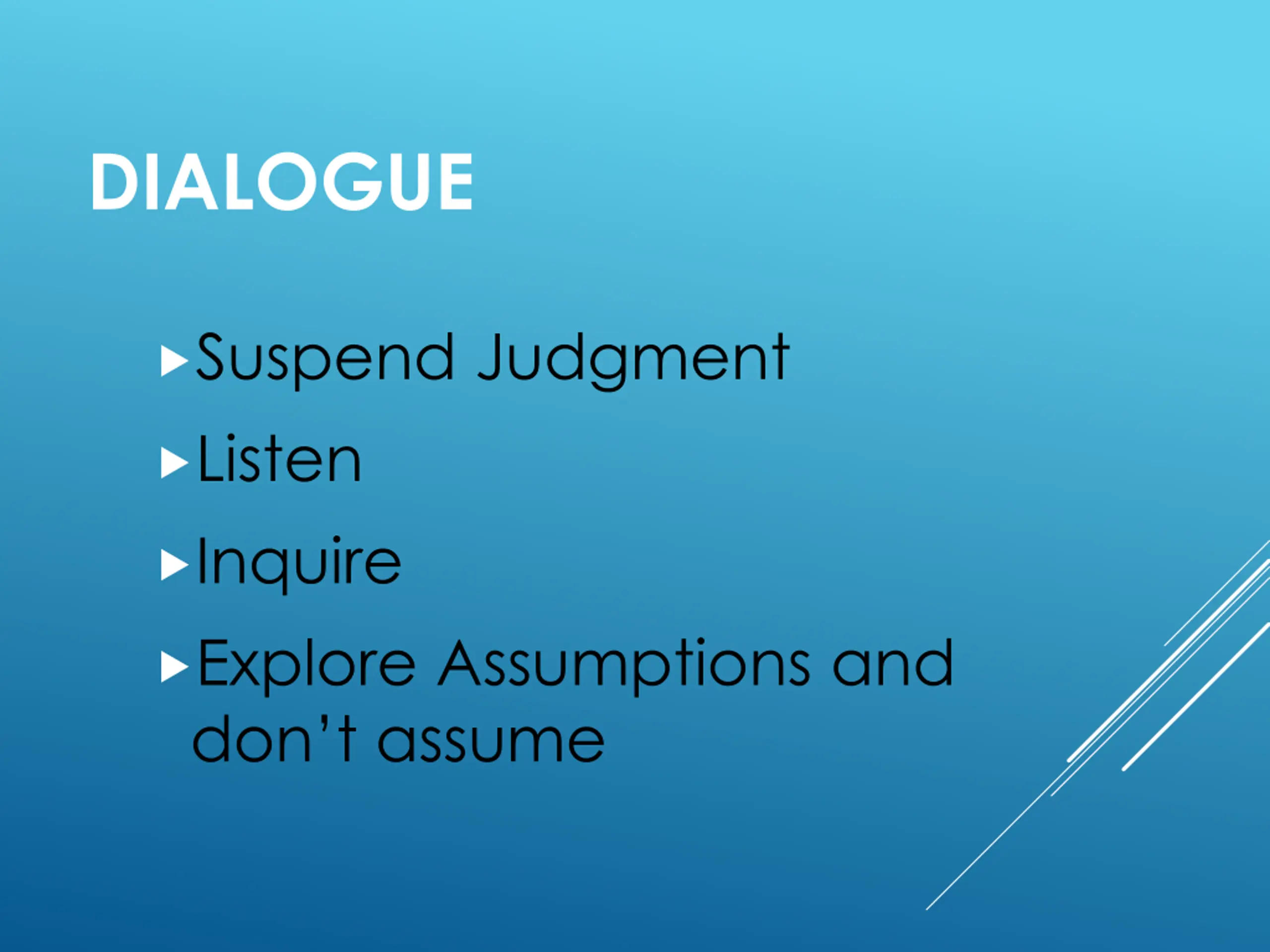 DIALOGUE Suspend Judgment Listen Inquire Explore Assumptions and don t assume